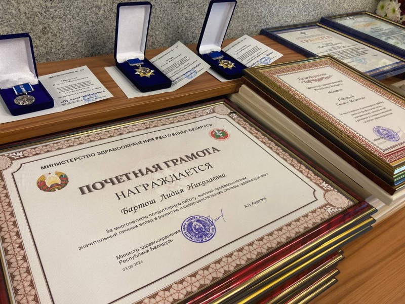 Более 60 представителей здравоохранения Минщины были награждены грамотами и благодарностями Миноблисполкома, Министерства здравоохранения, профсоюза работников, главного управления по здравоохранению, грамотами областного управления МЧС.