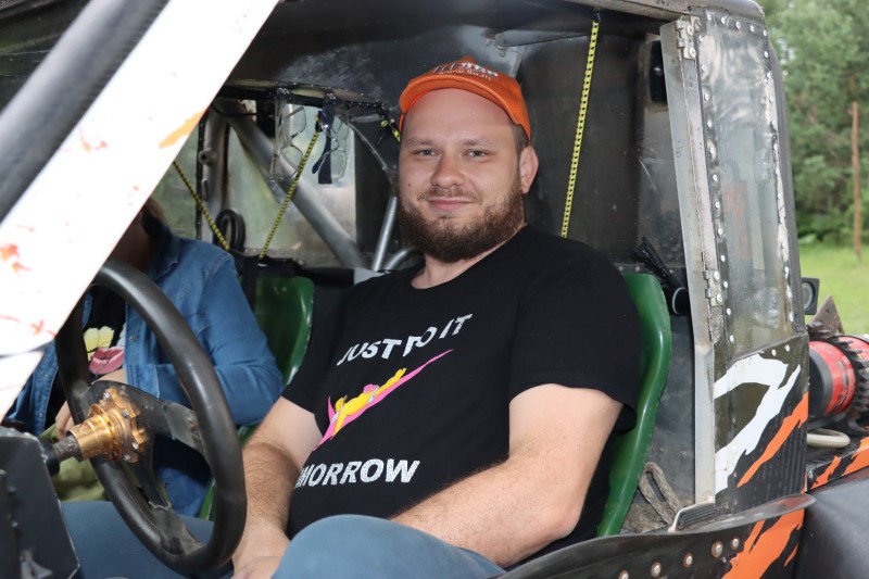 В экипаже с Максимом ещё и Дмитрий Юнчик. Автомобиль у парней оснащён системой автоподкачки колёс, модернизирован специально под эти виды соревнований, и в своём роде является эксклюзивным экземпляром. Максимальная скорость – 120 километров в час по пересечённой местности. Двигатель дизельный, ест условно говоря 100 литров на 100 километров, но это далеко не точная цифра, потому что езда по болотам и бездорожью не позволяет рассчитать точный расход. Авто у Максима весит 1200 килограмм, для машин такого типа это очень мало.