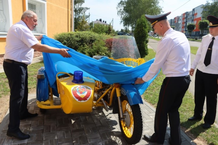 Мероприятие было поделено на две части. В первой состоялось открытие музейного экспоната служебного мотоцикла «Урал». Композиция получила название «Связь с прошлым». По словам начальника Березинского РОВД подполковника милиции Андрея Зайца, решением офицерского совета было определена необходимость создания такого памятного места в знак заслуг далёкого прошлого – ведь мотоцикл «Урал» с коляской – это несомненный символ милиции советских времён. По высказыванию присутствующих ветеранов внутренних органов, в ту эпоху не было для милиционера техники лучше и надёжнее.