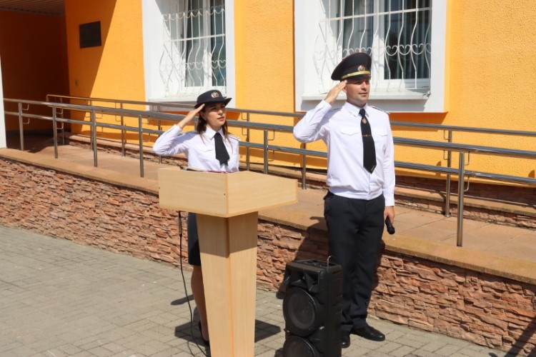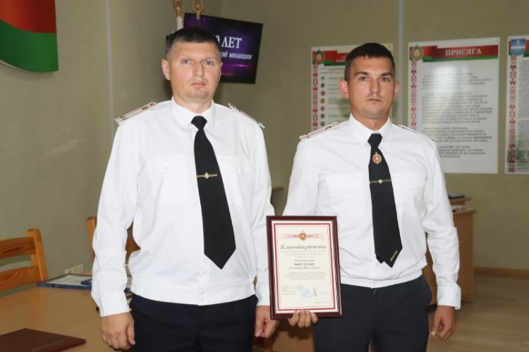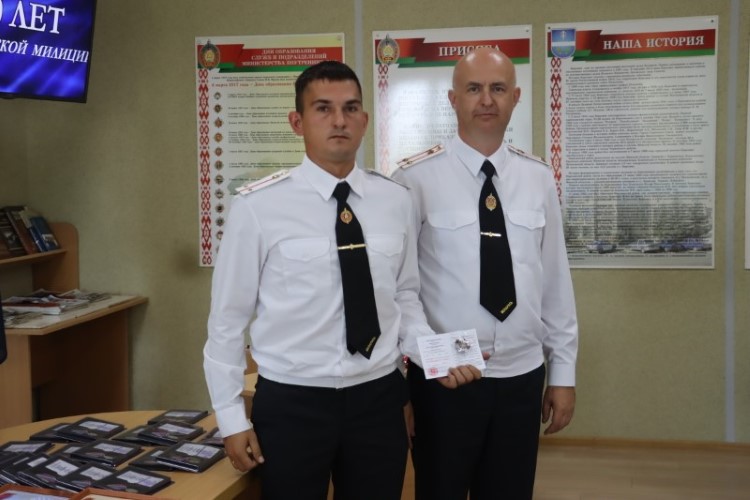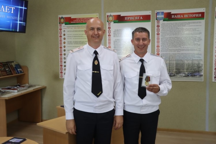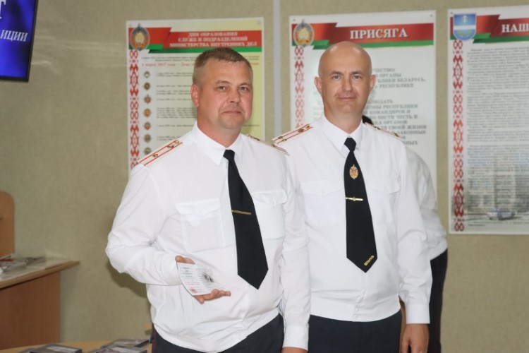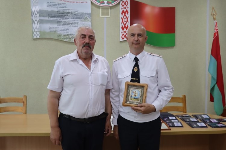В финале бывший начальник Березинского РОВД полковник Виталий Дмитриев выступил с торжественной речью, в которой особо подчеркнул значимость службы милиционера – в первую очередь это служба Родине – и вручил нынешнему начальнику Андрею Зайцу икону Георгия Победоносца, как символ верности и преданности службе закону.