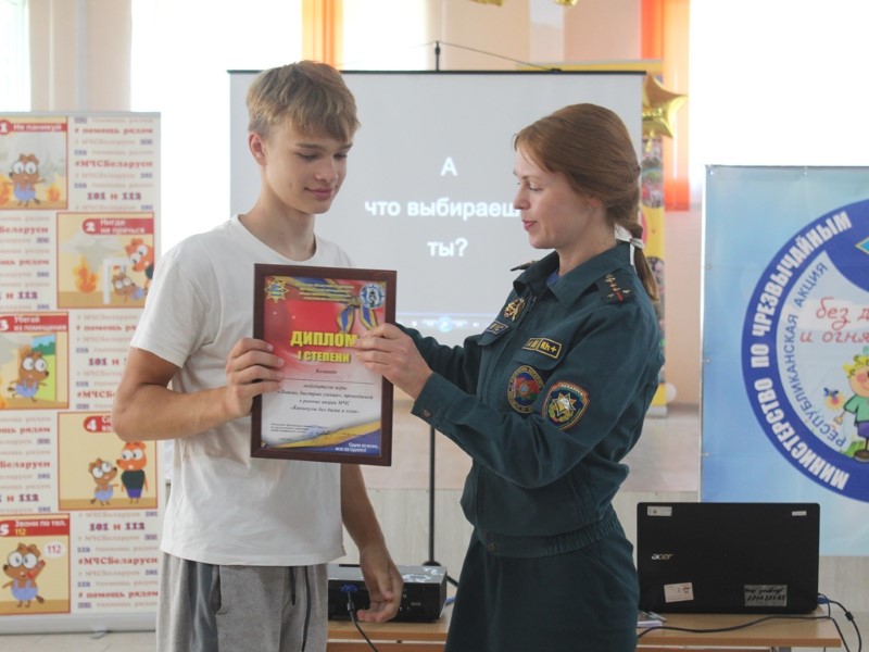 Атрымаўшы летам свабоду ад настаўніцкага і бацькоўскага кантролю, нашы дзеці могуць аддаваць перавагу яркім эмоцыям, а не здароваму сэнсу. У рамках прафілактычнай кампаніі «Канікулы без дыму і агню» інспектар прапаганды Бярэзінскага райаддзела па надзвычайных сітуацыях Вольга Ермакова наведала трэцюю змену аздараўленчага лагера «Папараць-кветка», у якой аздараўліваюцца звыш за сотню дзяцей: тут праведена агульналагерная эвакуацыя, гульня «Шыфр 112», дзеці паглядзелі некалькі прафілактычных фільмаў. Дапамагаў у правядзенні мерапрыемства навучэнец Мінскага абласнога кадэцкага вучылішча Ілля Данэйка: на этапе «Экіпіроўка” ён не горш за прафесійнага работніка службы ратавання расказваў пра асаблівасці баявога адзення пажарных, праводзіў майстар-клас па яго апрананні, даваў камандам заданне патушыць умоўнае ўзгаранне. Па выніках гульні пераможцамі сталі каманды «Неўгамон», «Бабры», «Ракета».