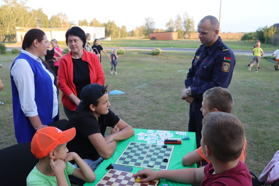Участники рейда были приятно удивлены уровнем работы и серьёзностью подхода в процессе организации досуга подростков и детей в Новинском учреждении культуры. Директор Дома культуры Светлана Климович организовала прямо во дворе учреждения игры и развлечения, в том числе шахматы и шашки, и многое другое. И детей пришло на площадку достаточно – яркий пример того, как важно правильно замотивировать и заинтересовать ребёнка с детства.