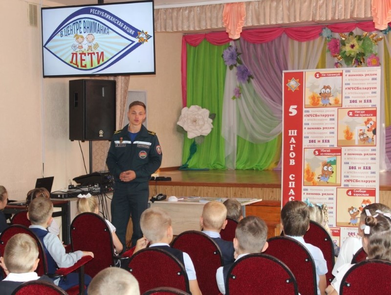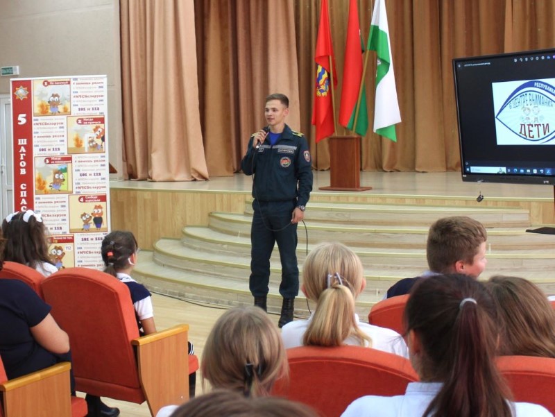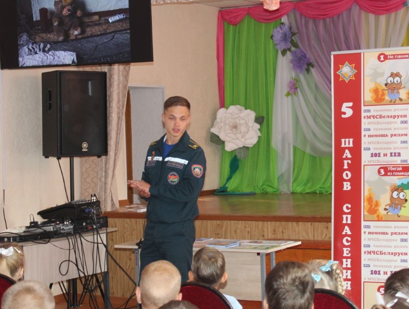 Приложив все силы для достижения мечты, юноша стал курсантом УГЗ и сейчас перешел на четвертый курс учебного заведения. Не так давно он прибыл на практику в родной Березинский район и сейчас не только познает на практике азы инженерно-инспекторского дела, но и помогает сектору пропаганды в проведении акции «В центре внимания – дети». Так, наш юный помощник, а в будущем коллега, провел уроки безопасности в пяти школах района: вместе с детьми он устанавливал причину пожара по фото, рассказывал о поведении при пожаре, показывал обучающие видео и мультфильмы, вручал полезную наглядную продукцию. Благодарность за работу курсанта от руководителей школ – самое лучшее подтверждение того, что Евгений Марченко выбрал верный путь. Несомненно, очень скоро мы назовем его своим коллегой и поздравим с первым офицерским званием!