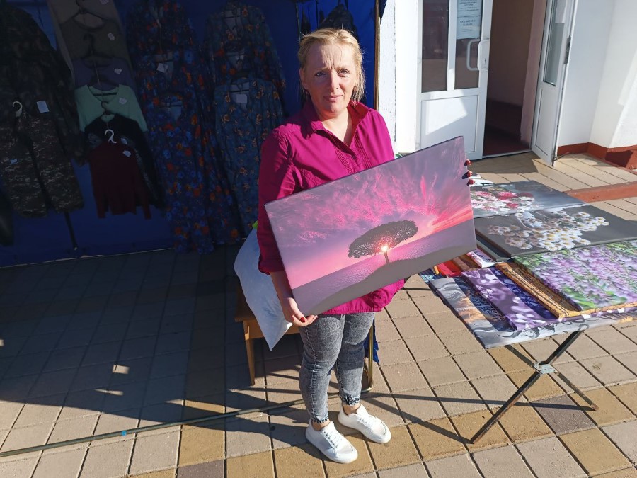 От комбината бытового обслуживания Елена Поддубская продавала картины, выполненные недавно закупленным в организацию плоттером. Также можно было приобрести одежду или заказать индпошив.