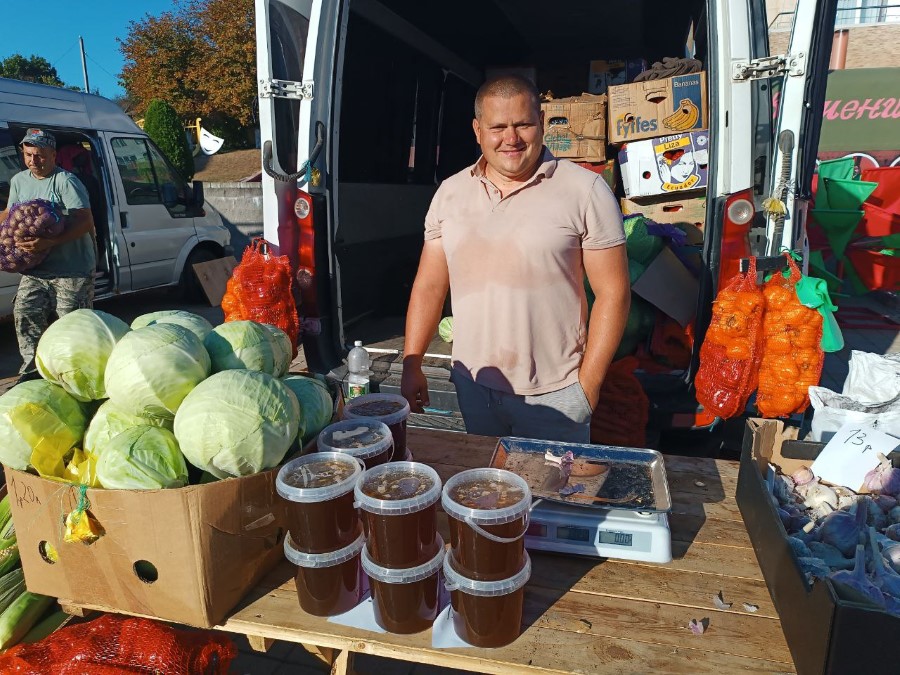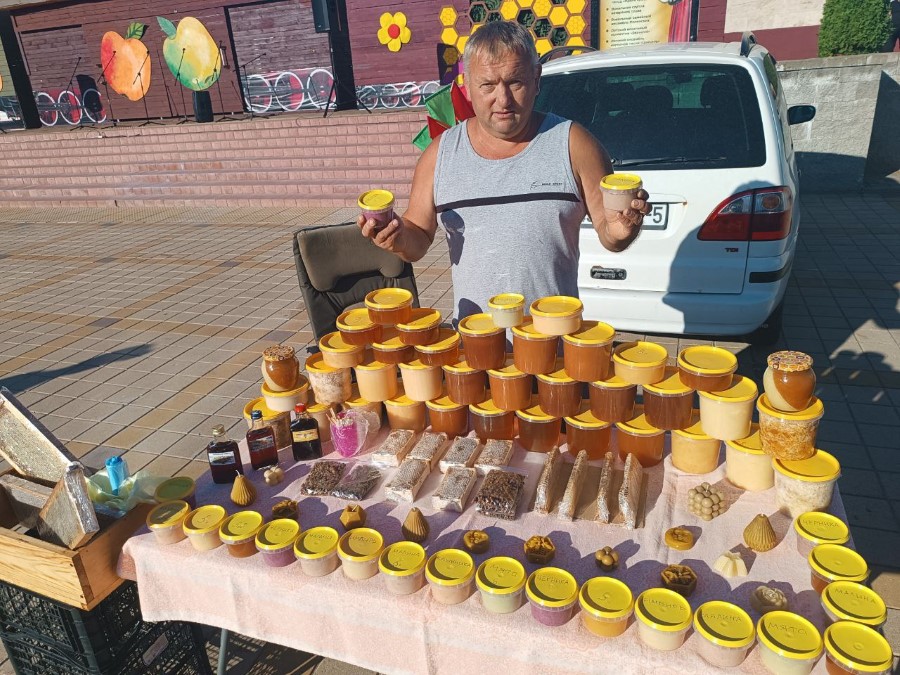 Огромный выбор мёда и продуктов пчеловодства предлагал Игорь Пирожник. Внимание привлекли различные виды крем-меда. По технологии мед взбивается и в него добавляются ягоды. Разнообразный вкус и польза в одном продукте.