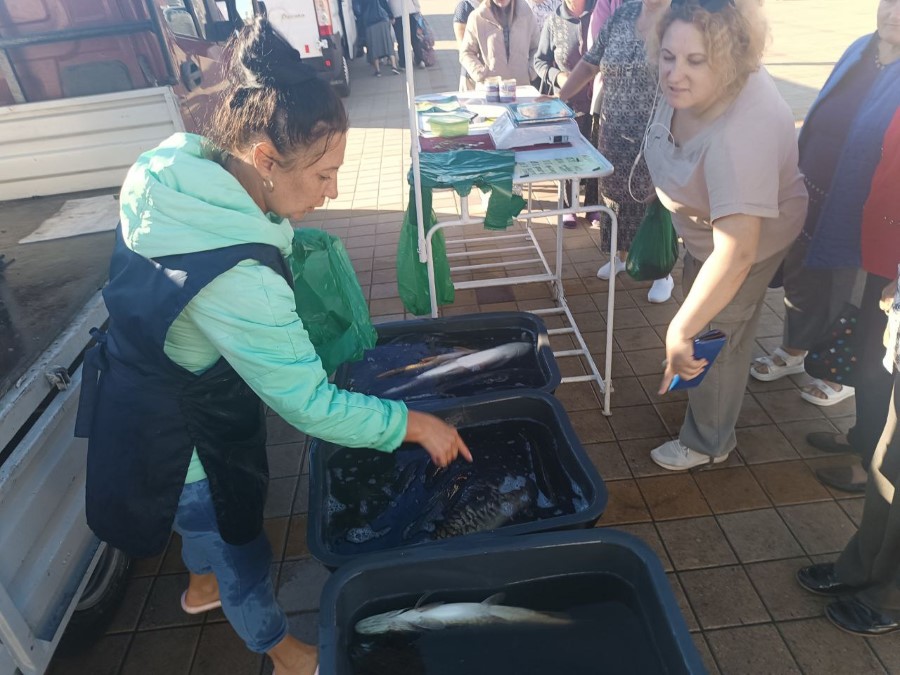 Большим спросом пользовалась живая рыба. Покупатель Валентина Колесень рассказала, что постоянно ходит на ярмарку в основном за ней. На прошлой неделе женщина купила карпа, а в этот раз приобрела сома.