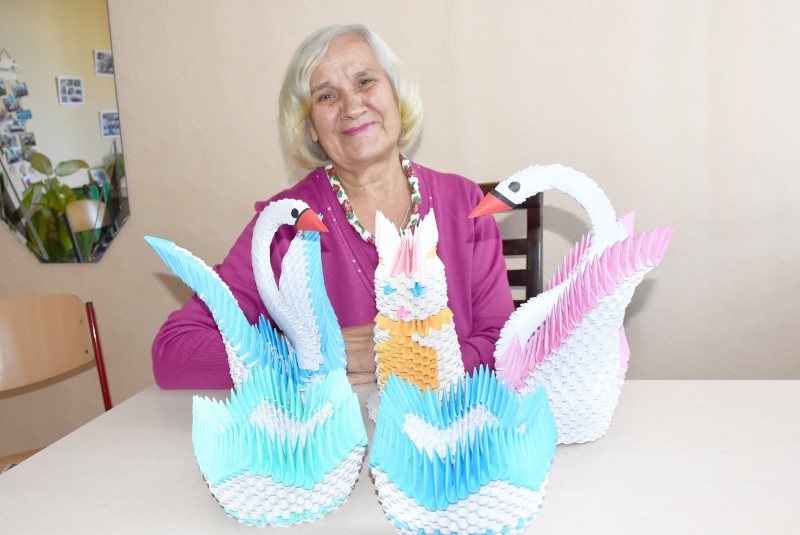 В отделение Березинского ТЦСОН пришла относительно недавно – в январе, и нашла единомышленников, интересных и добрых собеседников, с которыми в радость пообщаться, провести вместе время, заняться рукоделием. В свободное время Нина Путрик делает сувенирные вазочки и лебедей.