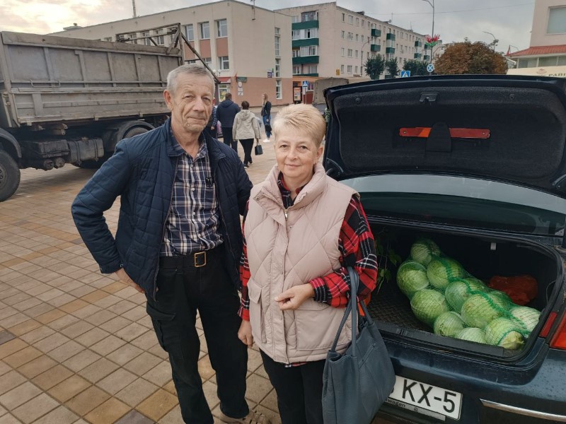 Поговорили и с покупателями. Антонина и Сергей Бурые приехали из Погоста, купили капусту, а также саженцы малины и ежевики. Они говорят, что место для ярмарки администрация района выбрала хорошее и доступное для любого желающего.