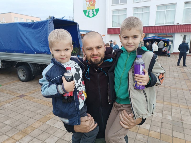 А Александр Буримский пришел на ярмарку с маленькими сыновьями Демидом и Федором. То, что ярмарки есть – это уже повод выбраться на прогулку всей семьей, сказал он. Но и Александр покупки тоже собирается сделать. В частности, пшеницу для своих кур, а также немного картофеля.