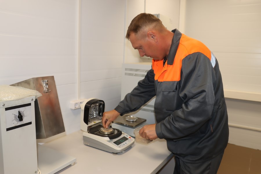 Готовые топливные гранулы также ожидает обязательная проверка в лаборатории, здесь определяются главные параметры: крохкость, зольность, влажность, теплоотдача. Заведует всеми процессами мастер производства Юрий Гамезо.