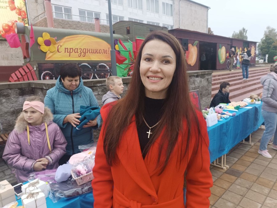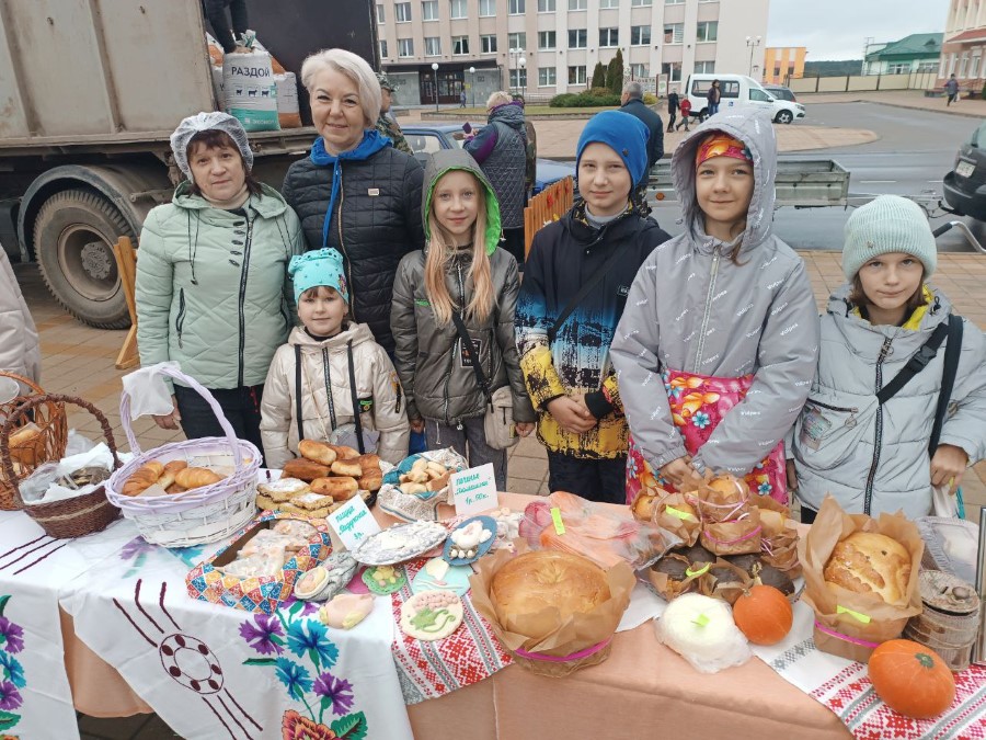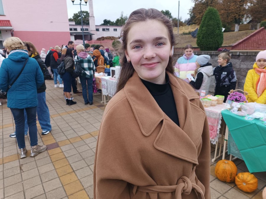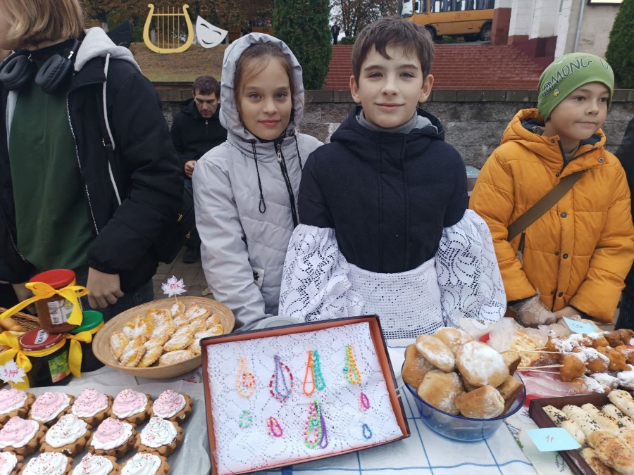 Из Поплавской средней школы на ярмарку в Березино приехали Соня Белоцерковская, Алена Самец, Даниил Тарасенко и Александра Щербанева. Дети продавали аппетитную пиццу и песочное печенье, пирожки с клубничным джемом и шарлотку с осенними яблоками. Цены разные, но у всех очень символические. Ведь, как призналась заместитель директора Наталья Серевин, которая привезла детей, для них в этом процессе главное участие.