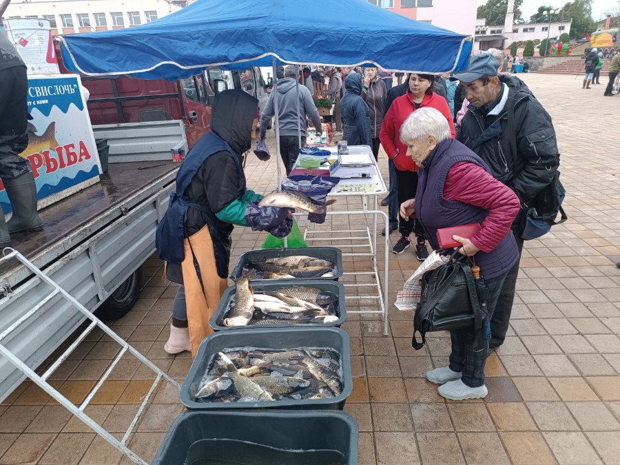 А от Березинского лесхоза торговали декоративными саженцами хвойных и лиственных пород. Традиционно, большая очередь была за живой рыбой от рыбхоза «Свислочь» и мясопродуктами от ЗАО «Клевица».