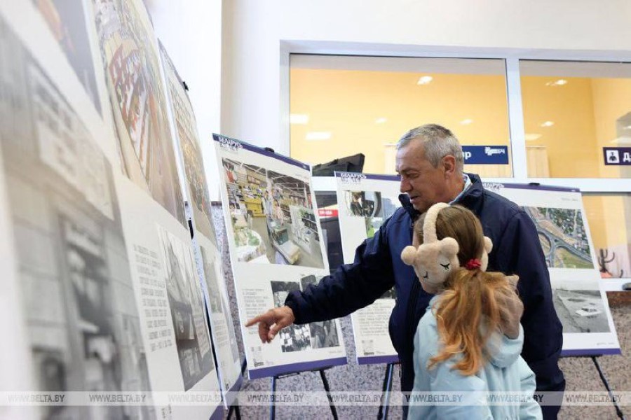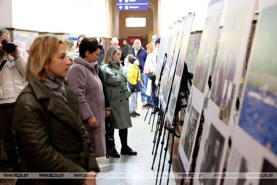 Здесь же, на железнодорожном вокзале, представили фотовыставку БЕЛТА "Беларусь. Взлет", где представлены фотографии за период 30-летнего пути независимой Беларуси. На публике данная выставка демонстрируется впервые.