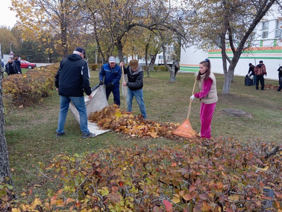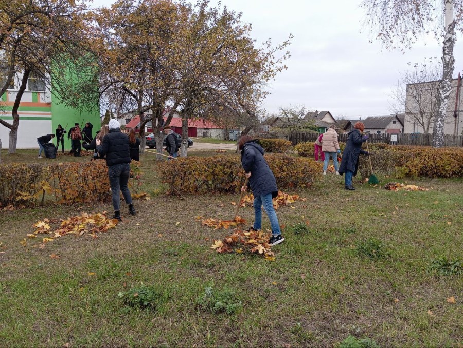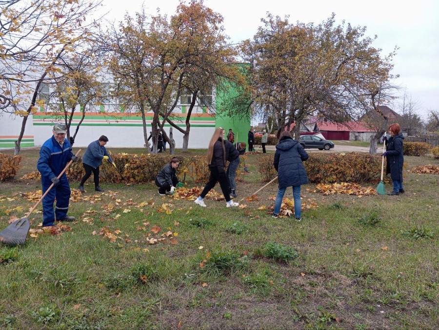 Трудится на уборке территории и коллектив Березинской школы искусств, который тоже вышел на субботник в числе первых.