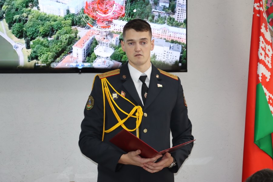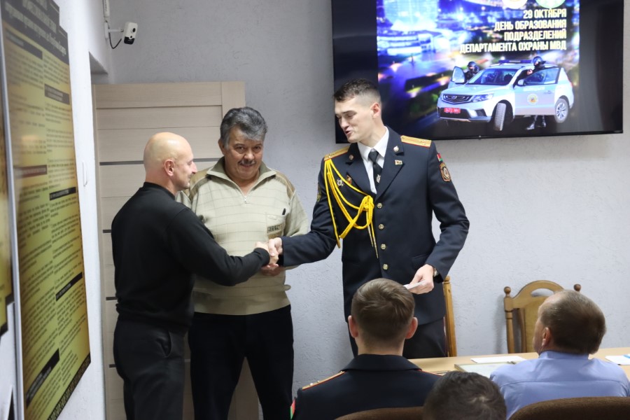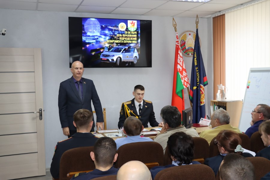 Начальник районного отделения Даниил Таратин зачитал поздравление начальника Минского областного управления Департамента охраны МВД и поздравил присутствующих лично.