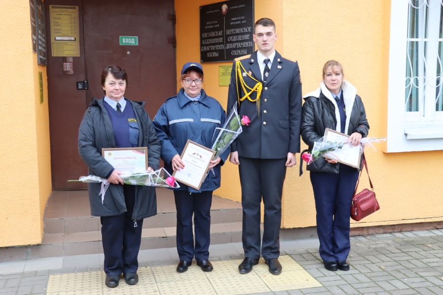 Благодарностью Минского областного управления Департамента охраны МВД отмечены охранники Сергей Хващевский, Елена Землянская, Валентина Ермалович, а также сотрудники Александр Солдатенко, Дмитрий Пшеничник, Татьяна Гамезо.