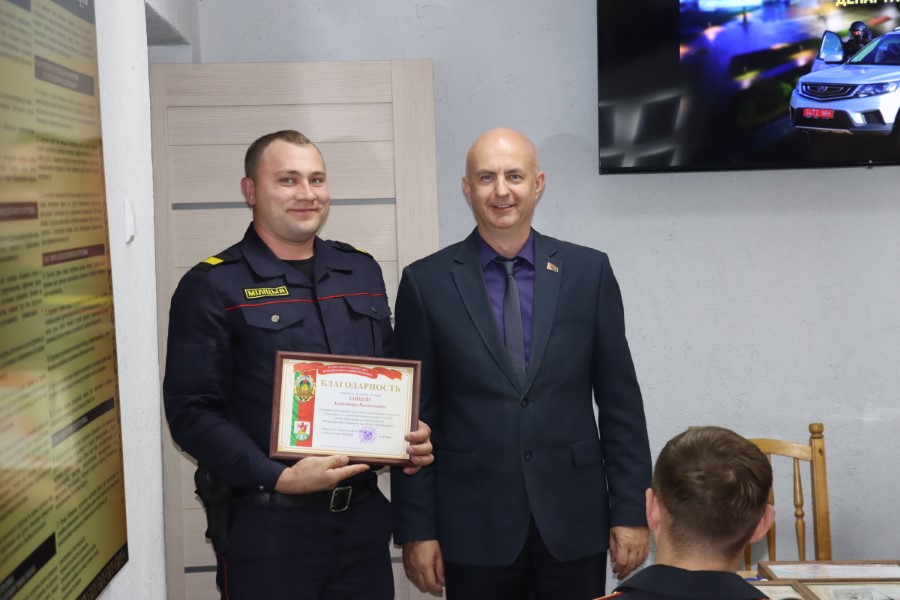 К слову, благодарности Березинского райисполкома удостоены прапорщик милиции милиционер строевого подразделения милиции Павел Ермачонок, старшина милиции милиционер строевого подразделения милиции Илья Колесник.