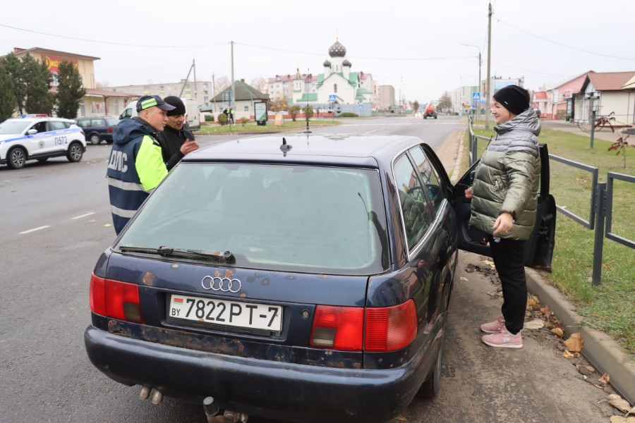 В обеденный час-пик автомобилей на улицах Березино много. Во время отработки на участке дороги возле магазина «Мяско» в поле зрения инспекторов попала семья в автомобиле, которая нарушила правила перевозки, ребёнок ехал без детского кресла, но был пристёгнут, при этом его рост был ниже 150 сантиметров. Водитель признал факт, получил предупреждение и обещал исправить ситуацию.