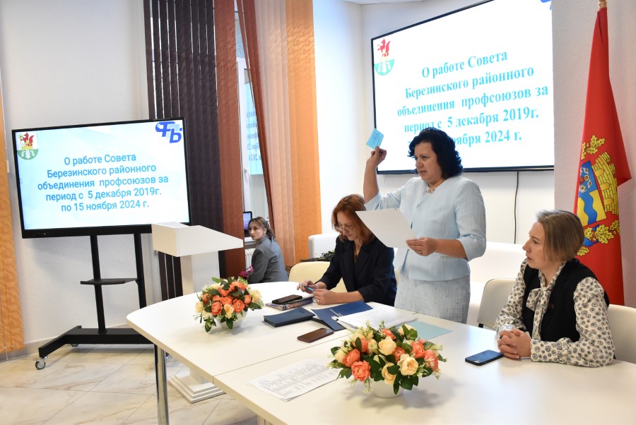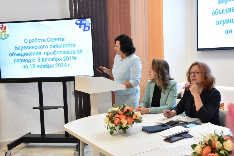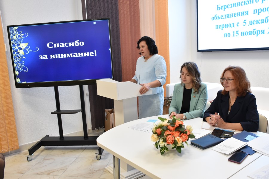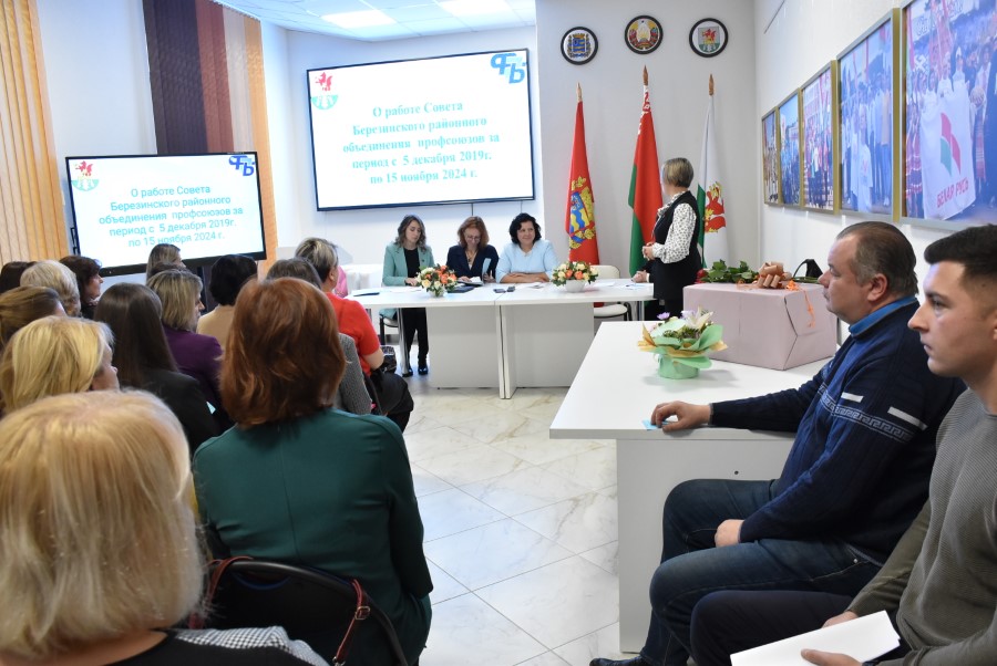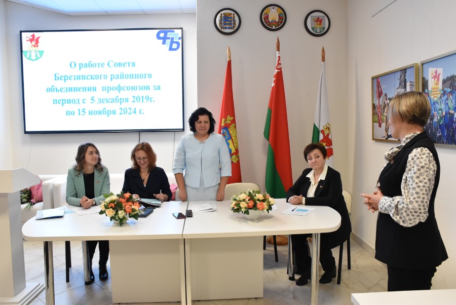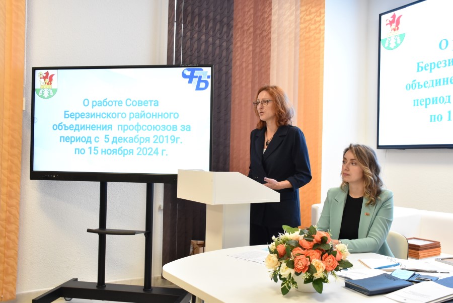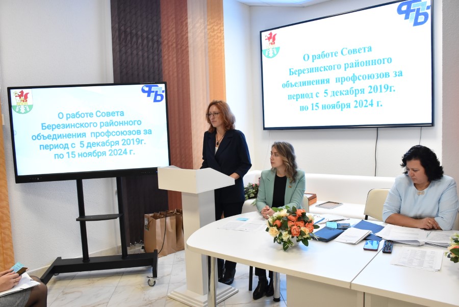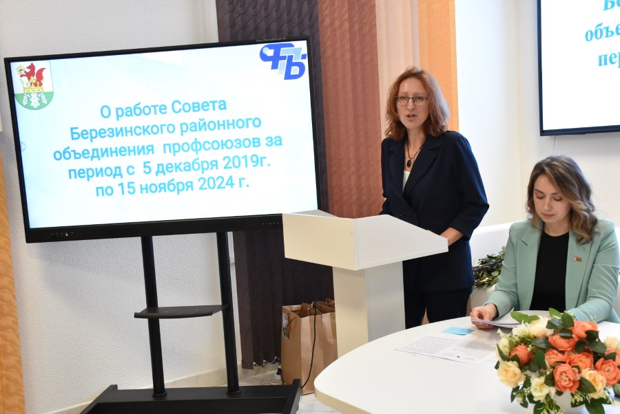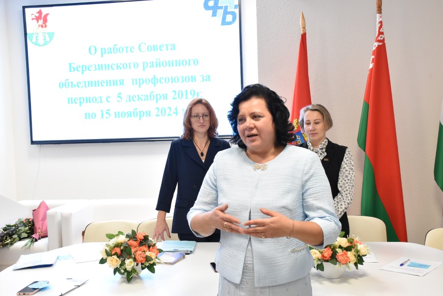 В ходе конференции с докладом «О работе Совета Березинского районного объединения профсоюзов за период с 5 декабря 2019 по 15 ноября 2024 года» перед присутствующими выступила председатель Березинского районного объединения профсоюзов Елена Токан.