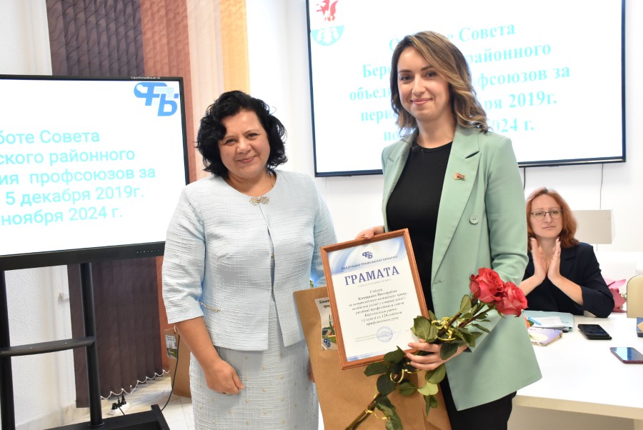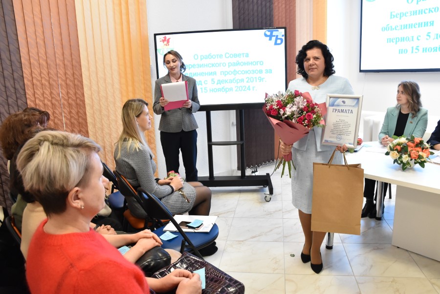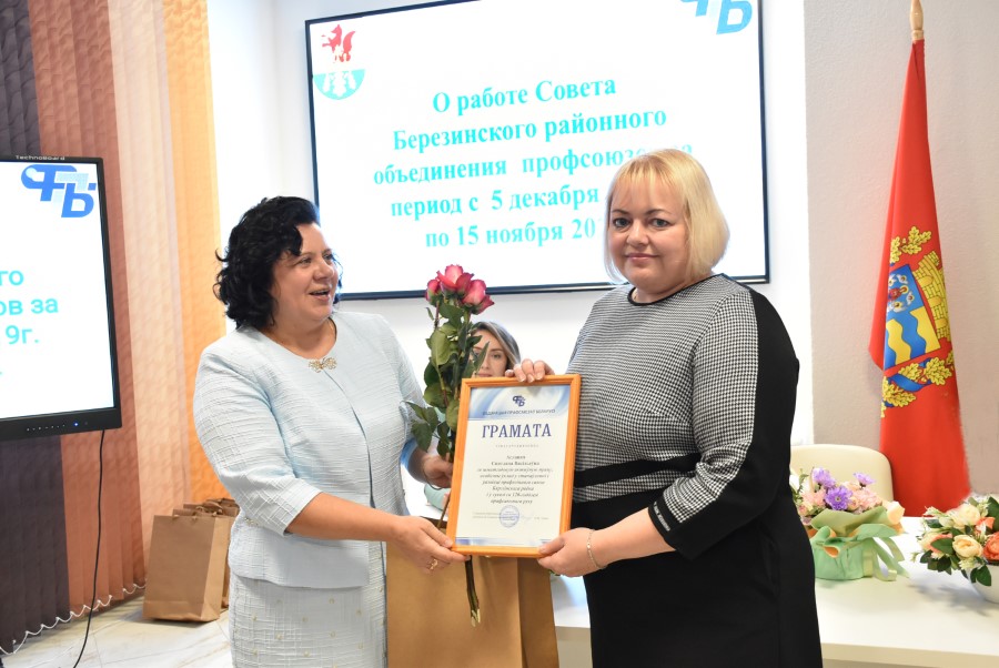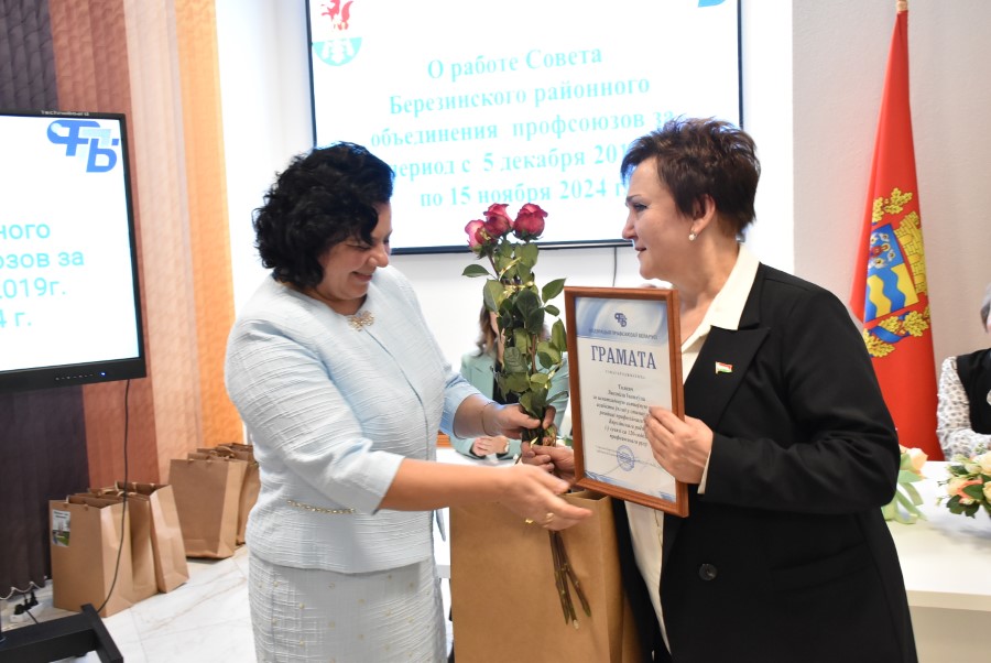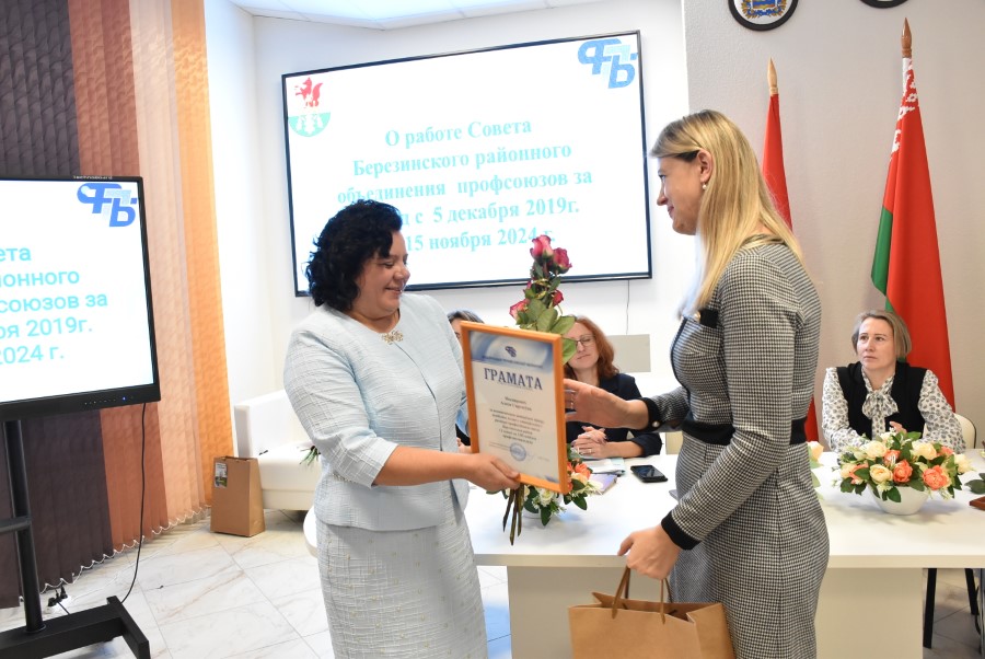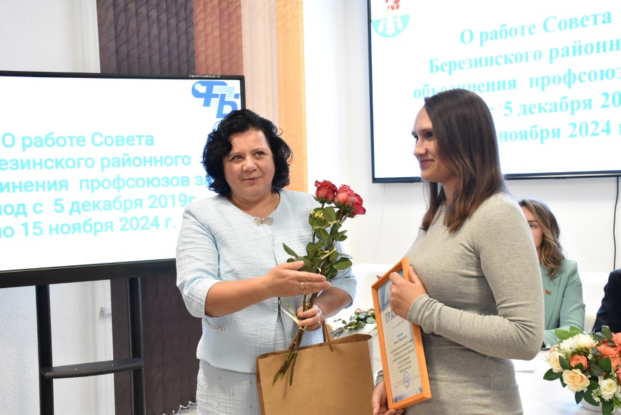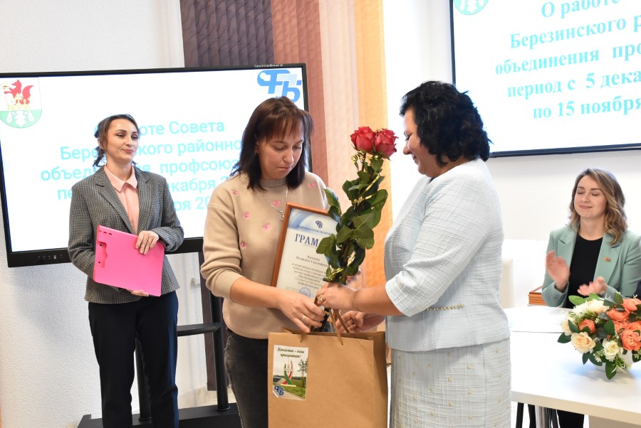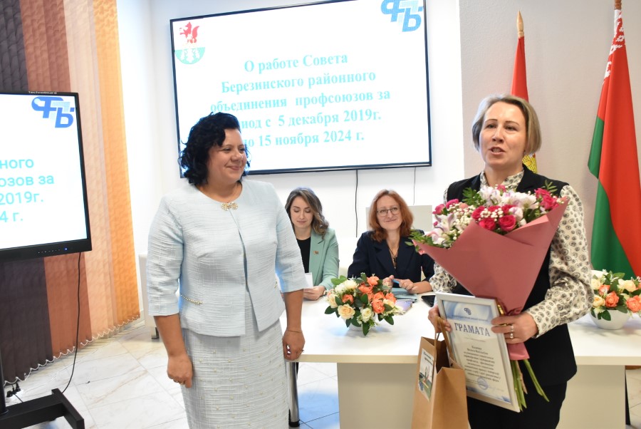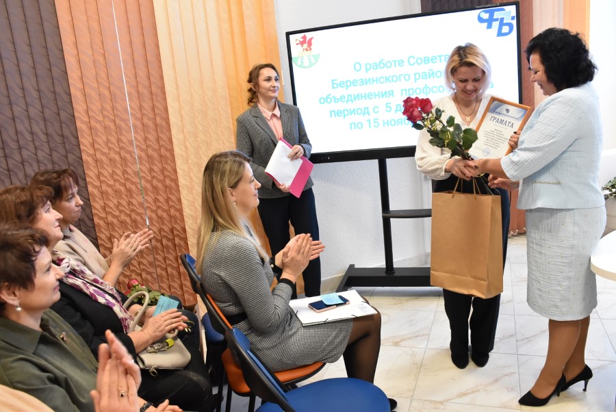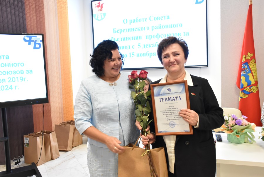 Также на мероприятии были отмечены грамотами за многолетнюю активную работу и личный вклад в становлении и развитии профсоюза Березинского района и в связи с 120-летием профсоюзного движения Екатерина Гайдук, Людмила Толкач, Светлана Асланян, Валентина Насковец и другие профсоюзные лидеры.