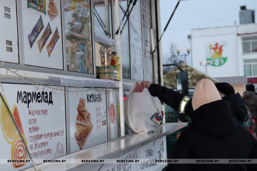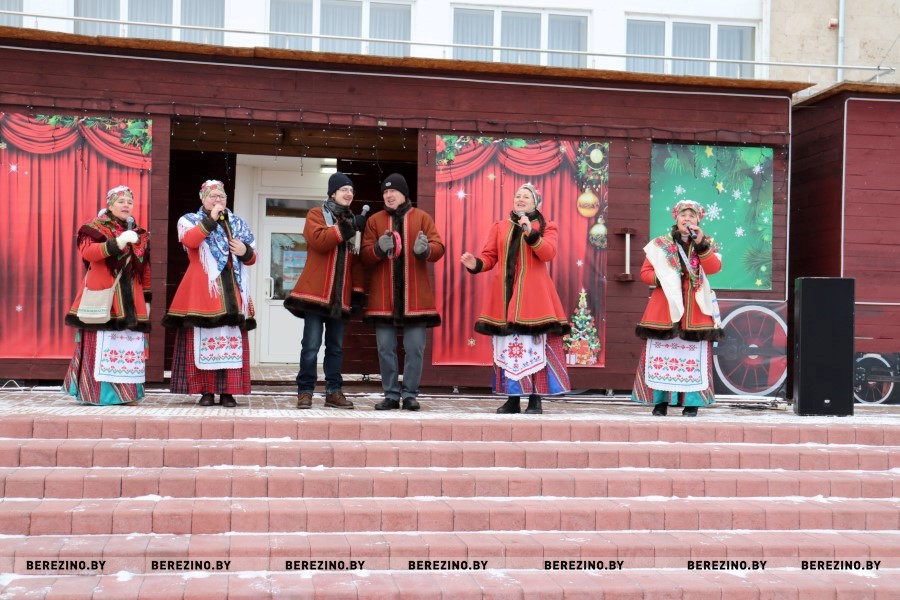 Прибавляли бодрости покупателям веселые новогодние песни, а также «живое» выступление Новинского гурта «Радзина».