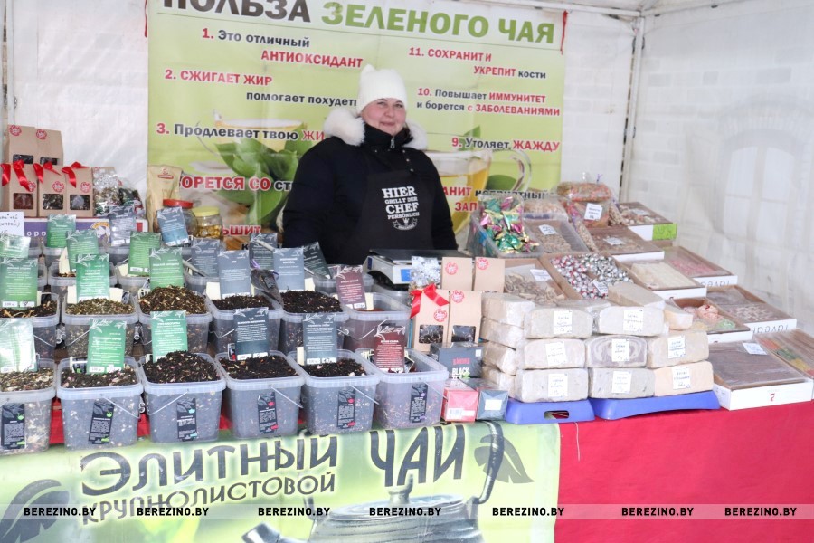Не пустовал и пятачок перед автомагазином наших бобруйских соседей, которые в широком ассортименте представили разнообразные сорта зефира, пастилы и прочих сладостей. Сладости, правда уже иного характера – конфеты, рахат-лукум, халву,  а также элитные сорта чая – можно было приобрести в соседнем павильоне. Ну и если продолжать сладкую тему, то как не упомянуть о продаваемом на ярмарке меде? Ведь он – это не только вкуснятина, но и кладезь витаминов, хорошее лекарство на многие случаи жизни.