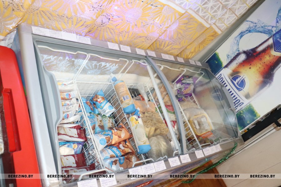 Увидеть же довелось довольно широкую планку разнообразных товаров. Есть мясная (в том числе и полуфабрикаты) и рыбная продукция, колбасные изделия, молочка, сладости (конфеты, печенье, напитки, мороженое), фрукты, алкогольные напитки, в числе которых и традиционное шампанское. Не пустуют полки, занятые повседневными товарами – хлебом, макаронами, подсолнечным маслом, отдельными видами сопутствующих товаров…