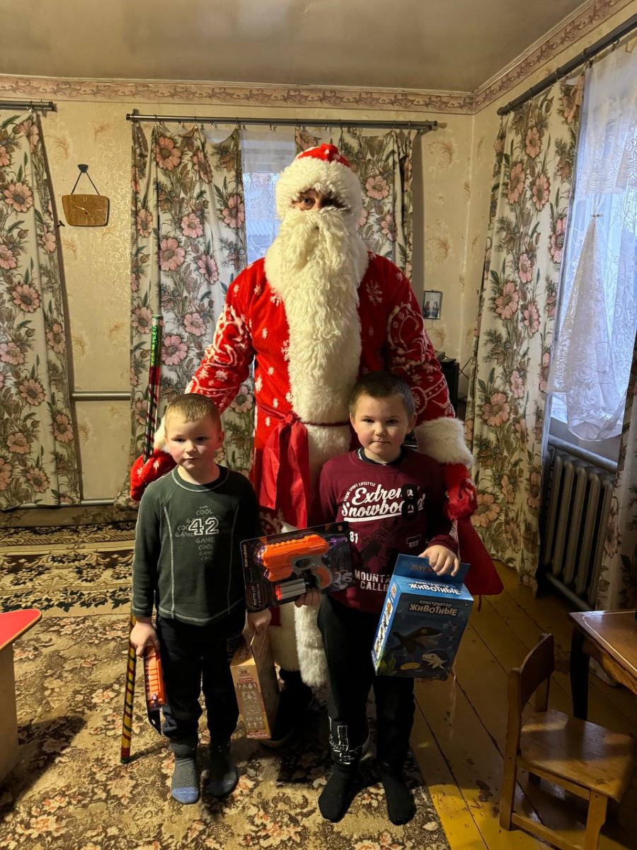 Поздравили с Дедом Морозом мальчишек Ярослава и Арсения с новогодними праздниками и вручили с подарки