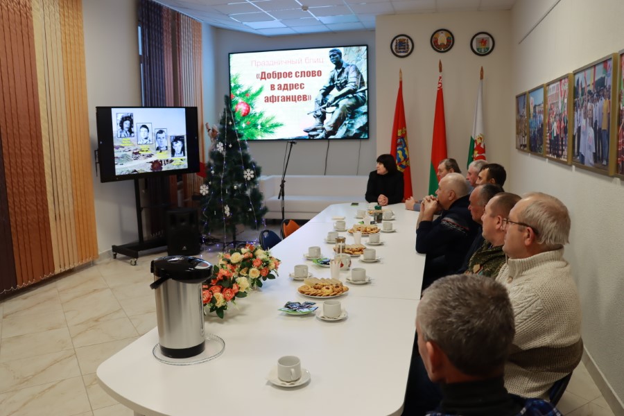 В официальной части собрания начальник отдела по идеологии, культуре и по делам молодёжи Наталья Жуковская поздравила ветеранов Афганистана с наступающим Новым годом и Рождеством, пожелала всем здоровья, бодрости духа и успехов в наступающем году.