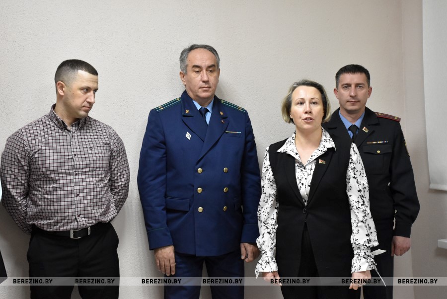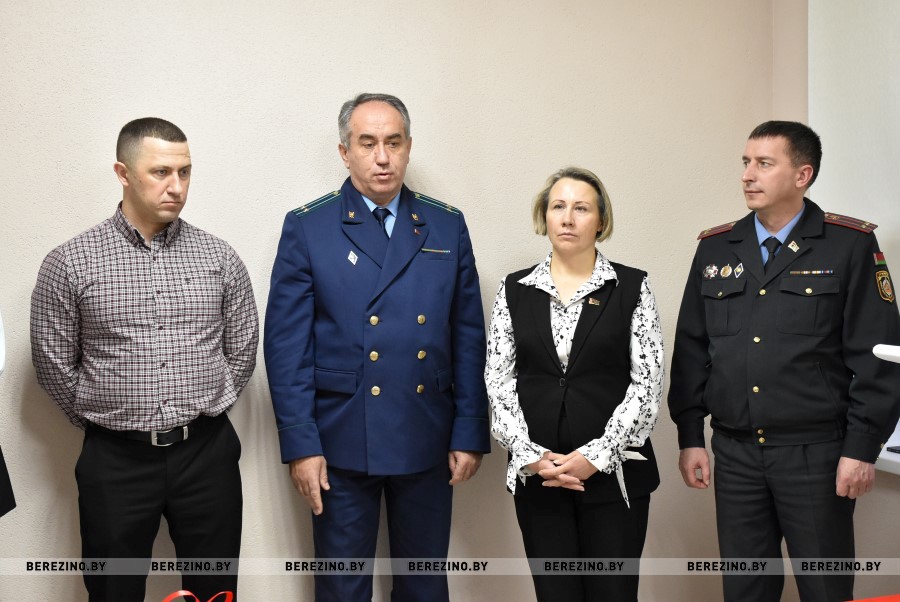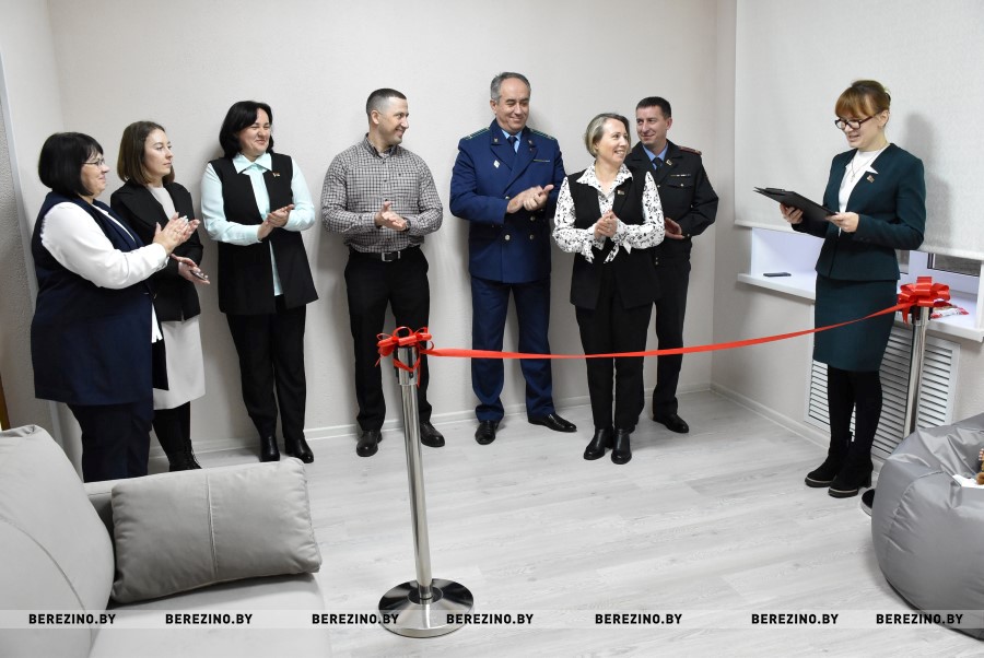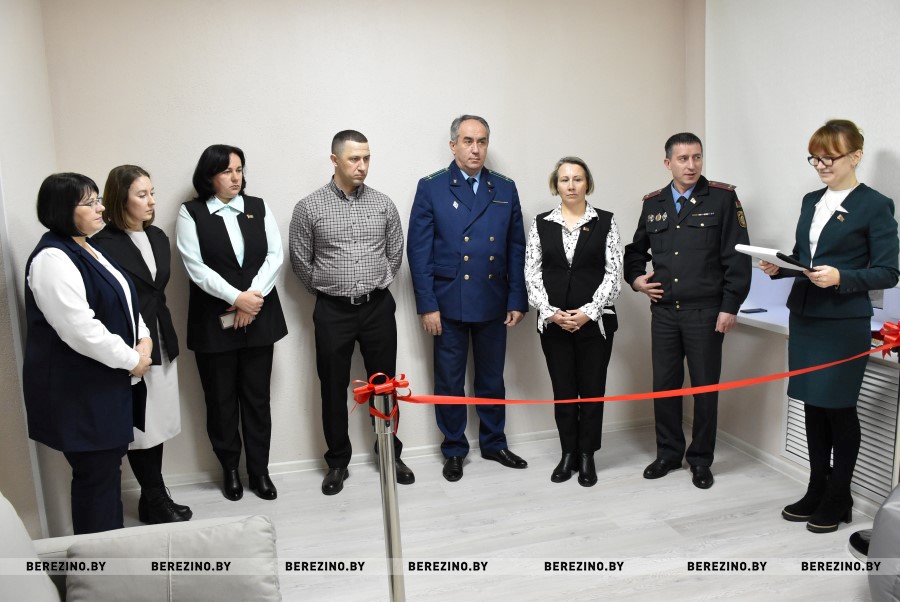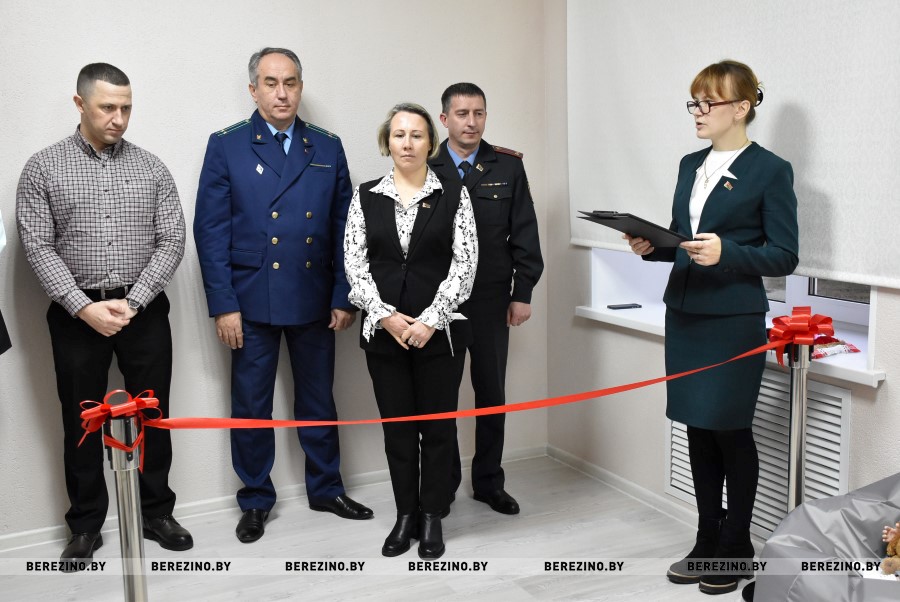 На мероприятии присутствовали заместитель председателя Березинского районного исполнительного комитета Ольга Колячко, прокурор Березинского района Виктор Юрашевич, начальник Березинского районного отдела Следственного комитета Республики Беларусь Николай Кот, заместитель начальника Березинского РОВД по идеологической работе и кадровому обеспечению, подполковник милиции Геннадий Рабиза. Они перерезали традиционную красную ленточку, каждый выступил с речью о необходимости данной дружественной детям комнаты.