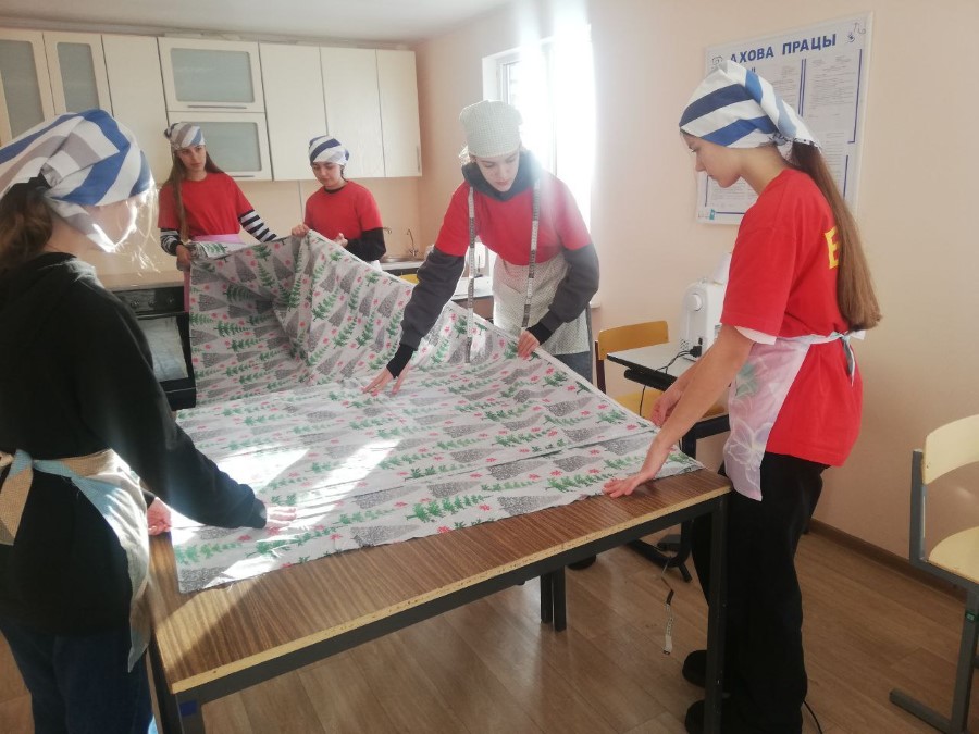 В рамках проекта, при оказании спонсорской помощи, были приобретены материалы для пошива постельных принадлежностей. И девушки в свое свободное время занимались раскройкой и пошивом белья для ребят из детского сада. В итоге было изготовлено 12 комплектов.
