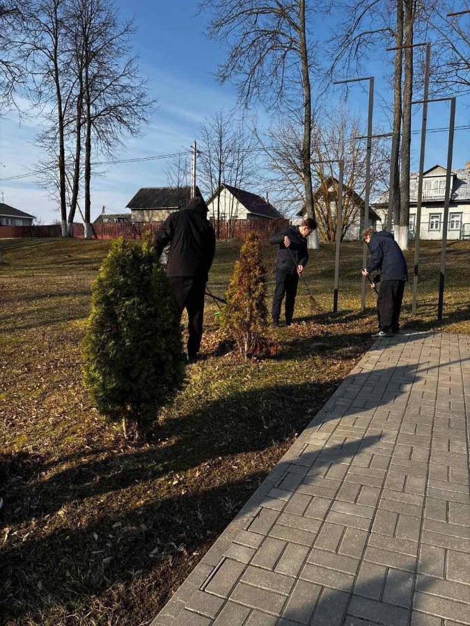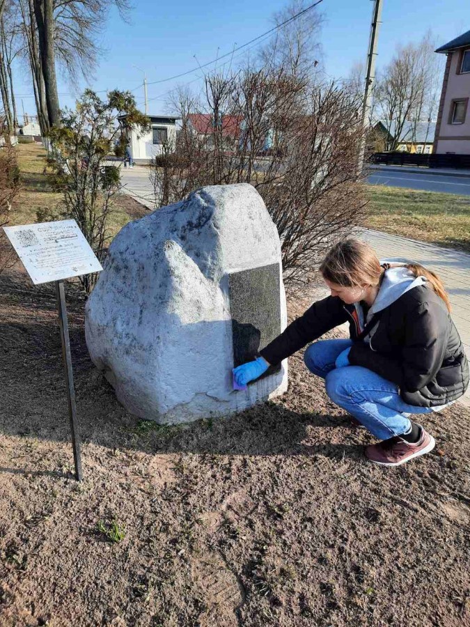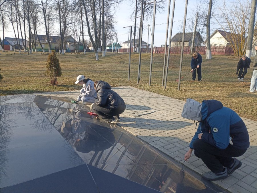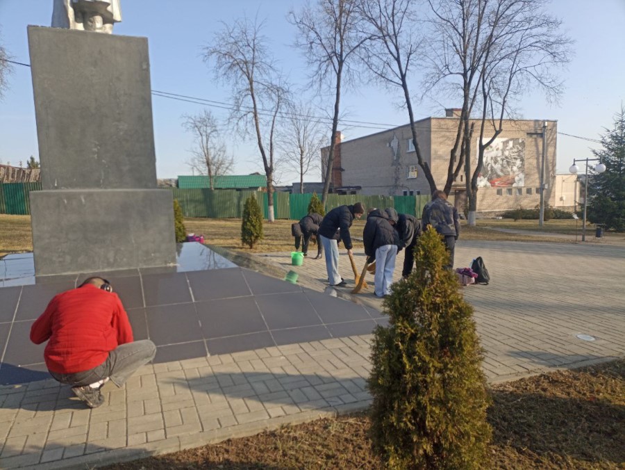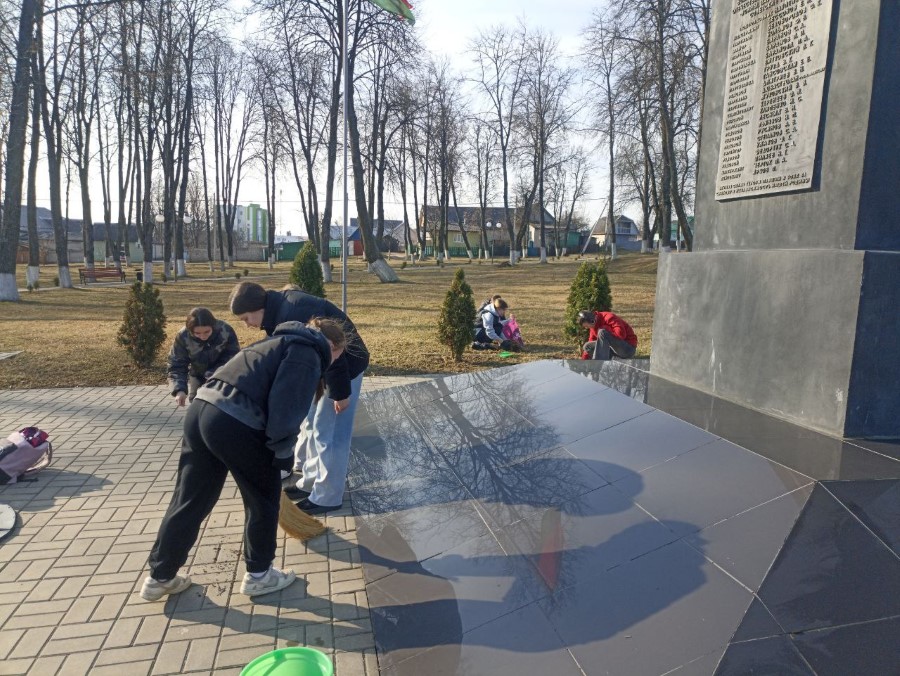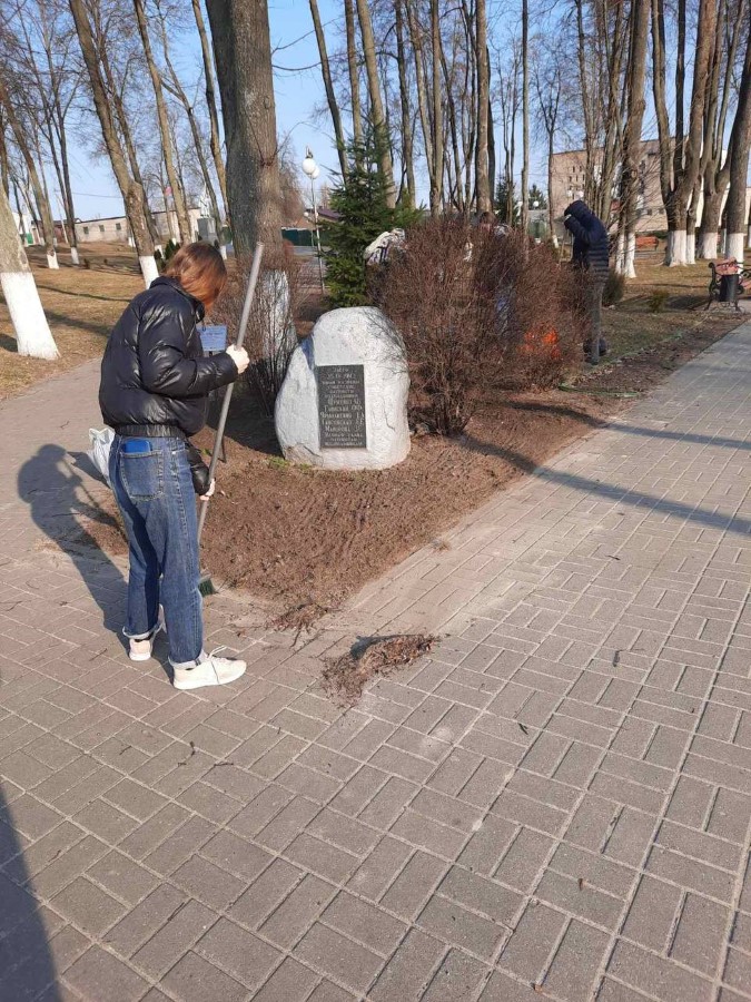 Учащиеся 9 Б и 10 Б классов ГУО «Средняя школа N2 г. Березино» в рамках районного субботника навели порядок на Братской могиле советских воинов, партизан и жертв фашизма и Памятном знаке в городском сквере, Могиле Неизвестного солдата на городском кладбище.