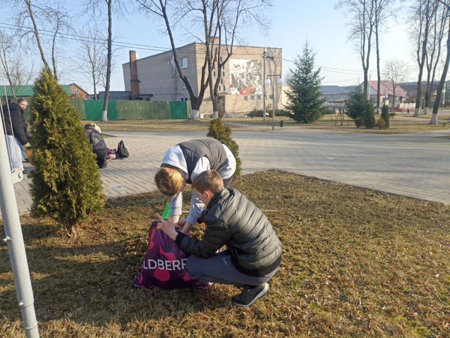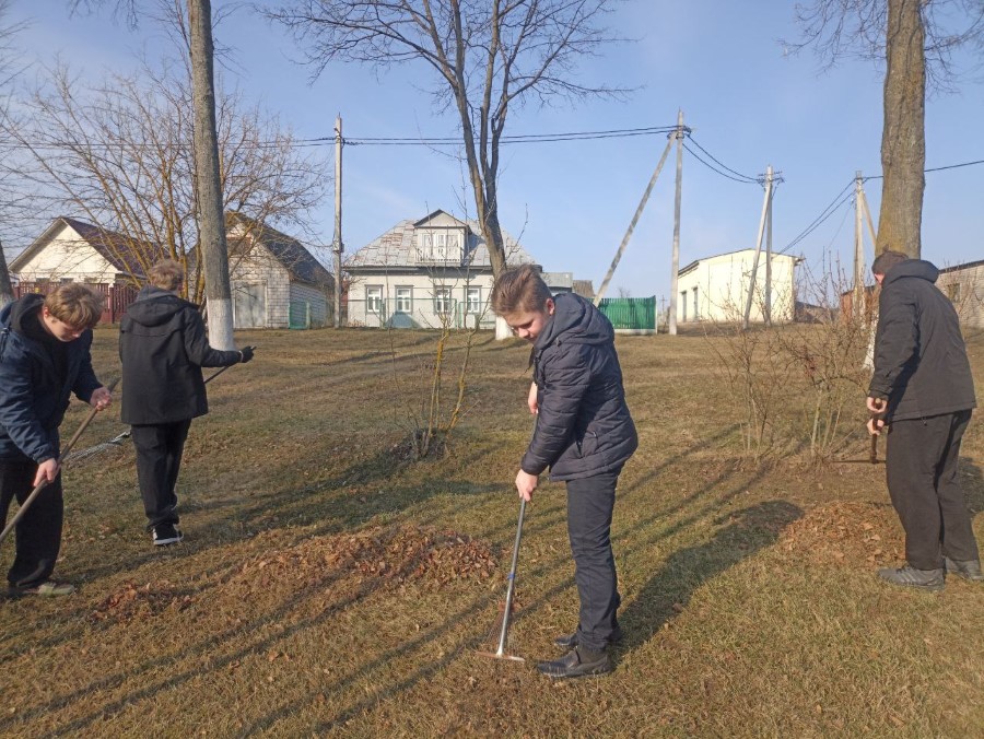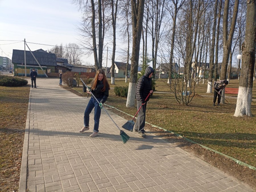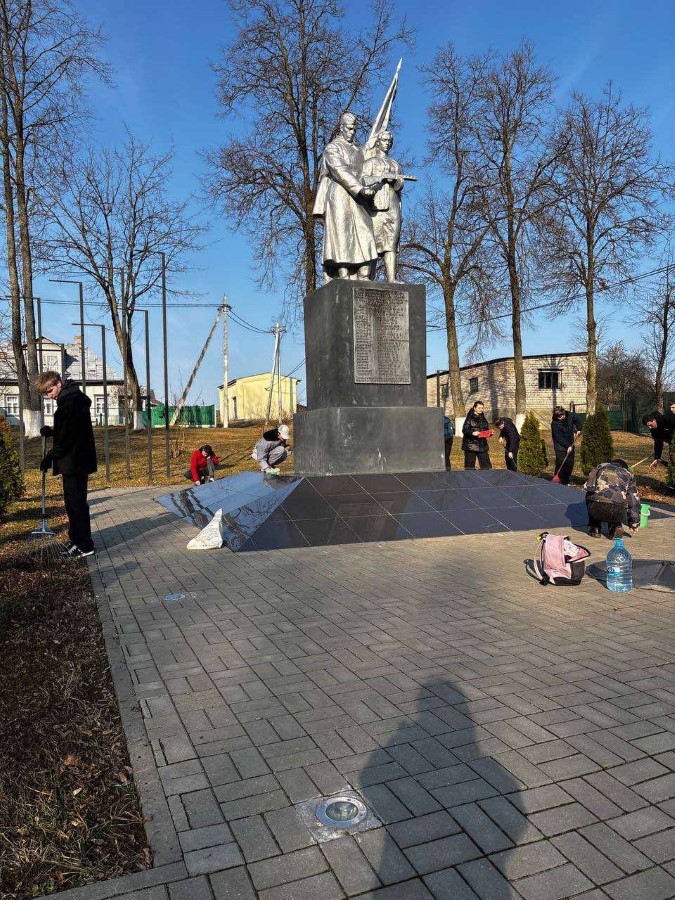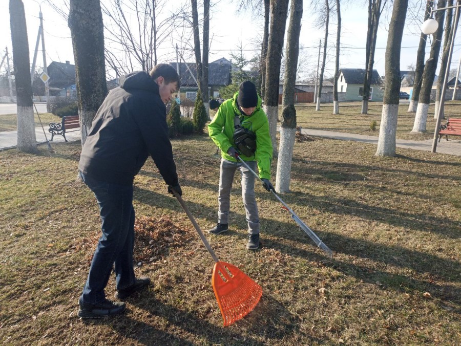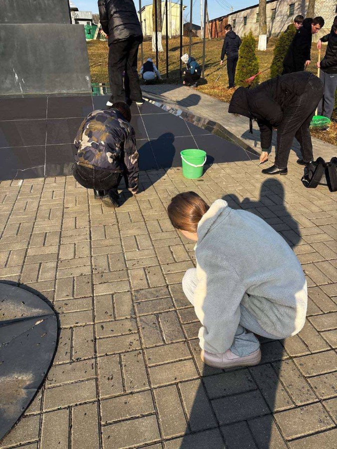 Учащиеся 9 Б и 10 Б классов ГУО «Средняя школа N2 г. Березино» в рамках районного субботника навели порядок на Братской могиле советских воинов, партизан и жертв фашизма и Памятном знаке в городском сквере, Могиле Неизвестного солдата на городском кладбище.