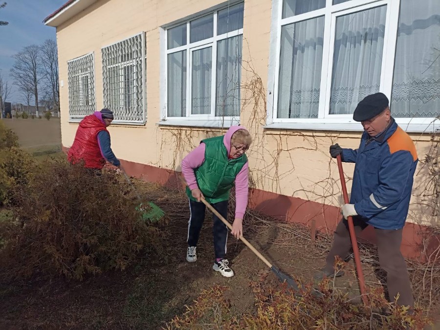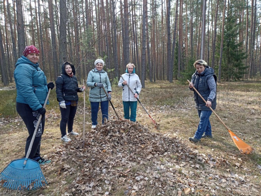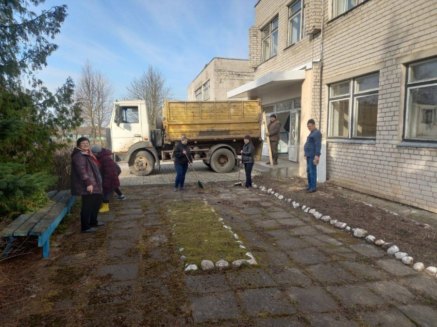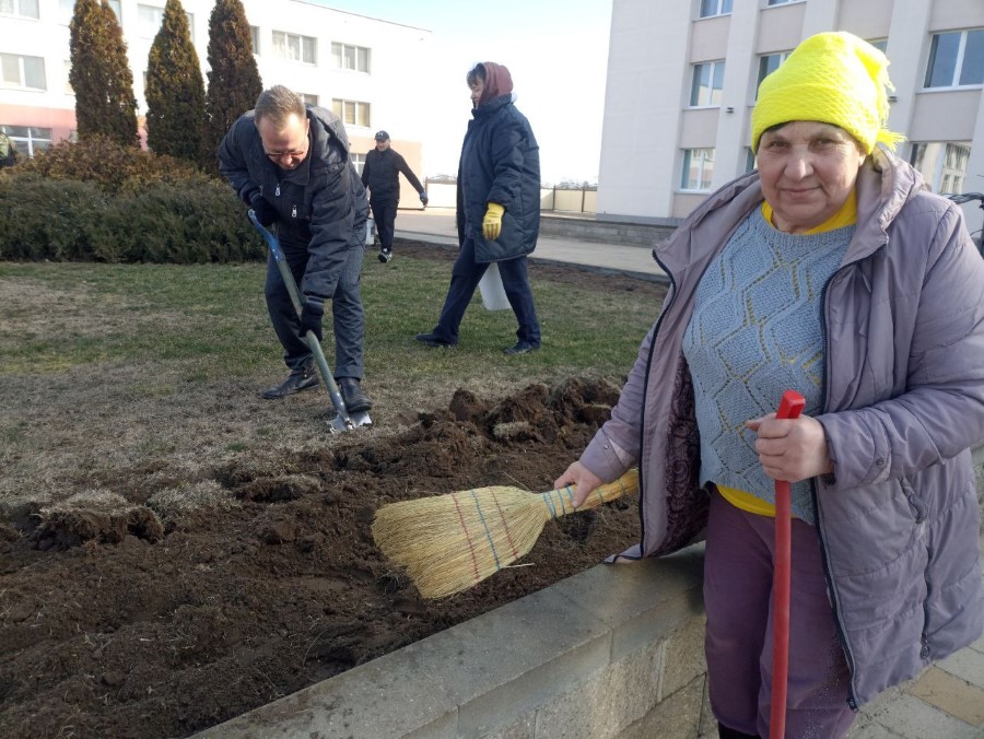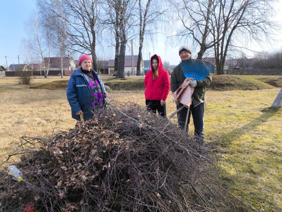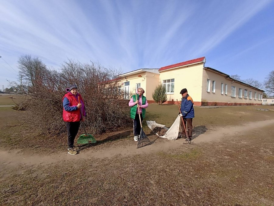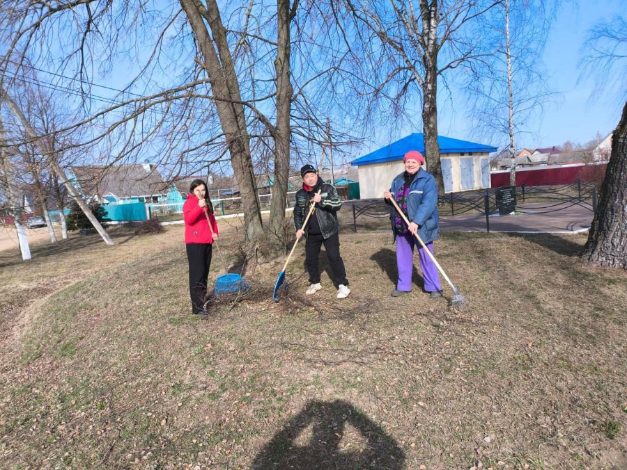 Работники Богушевичской библиотеки-клуб приняли активное участия по наведению порядка на территории около здания учреждения в рамках районного субботника.