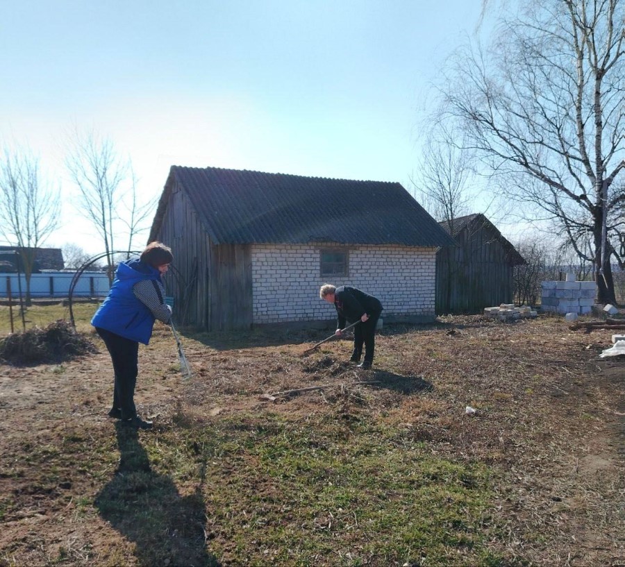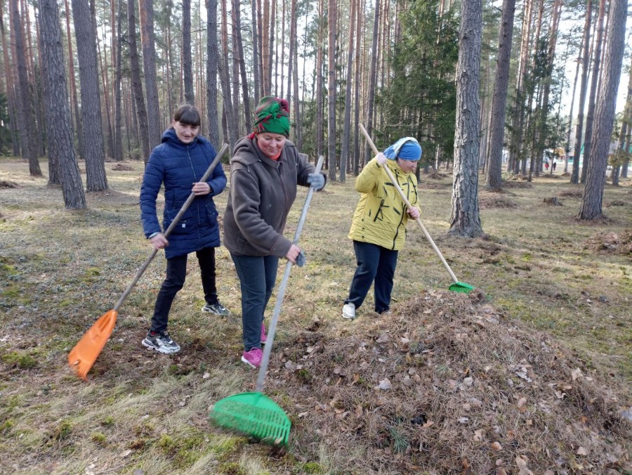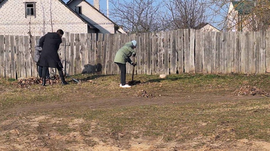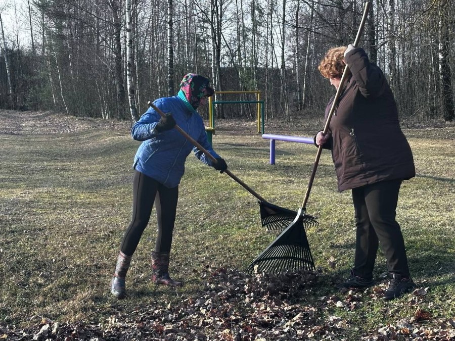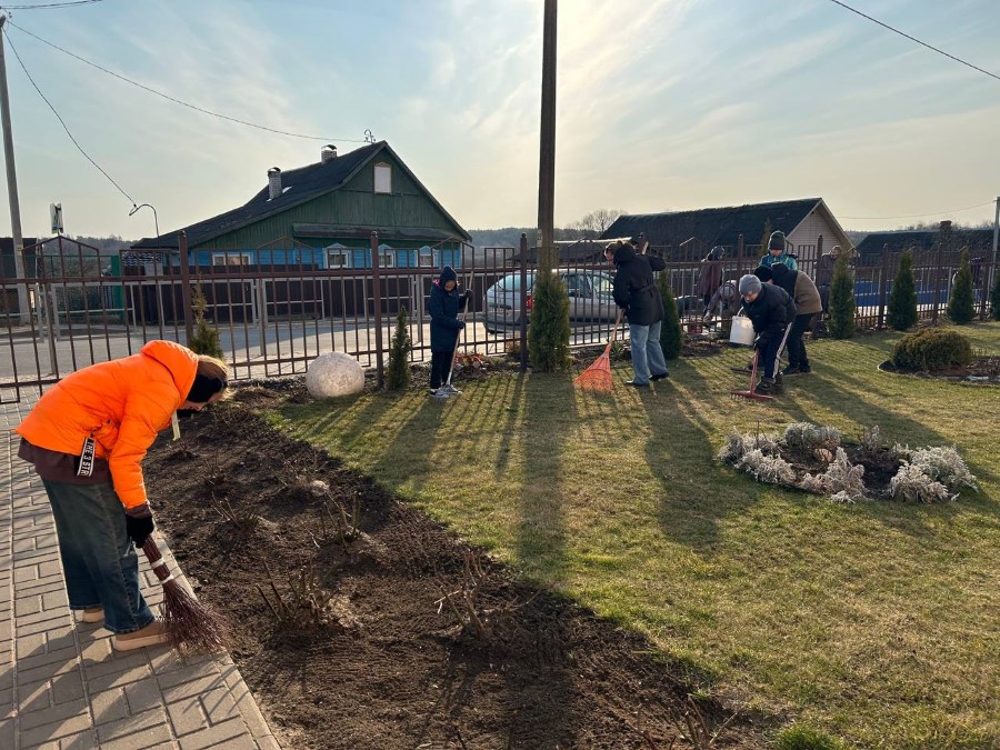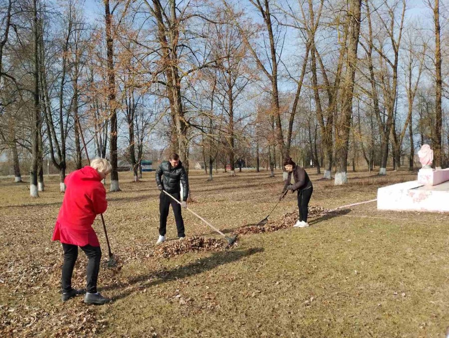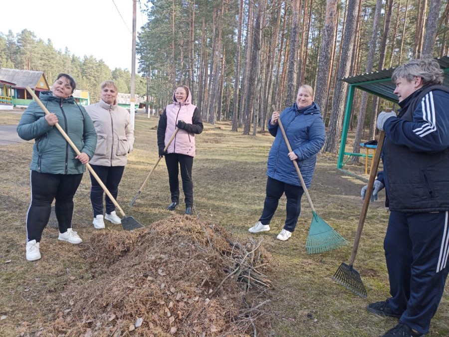 Работники Богушевичской библиотеки-клуб приняли активное участия по наведению порядка на территории около здания учреждения в рамках районного субботника.