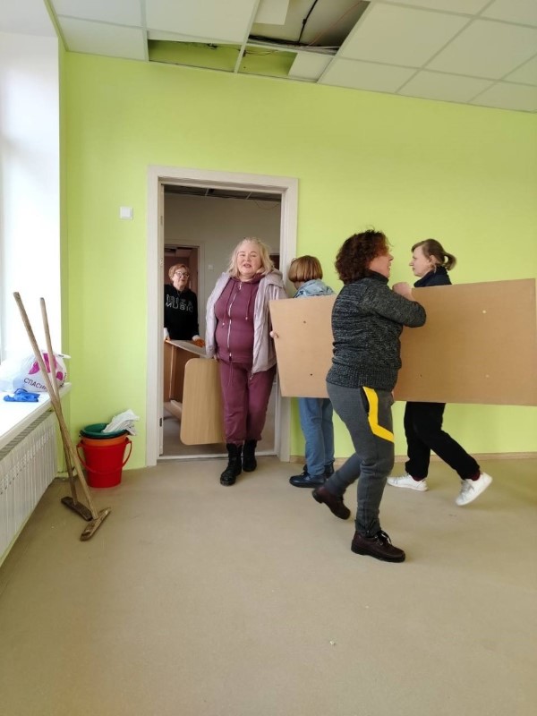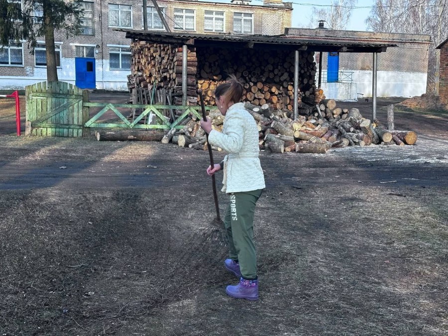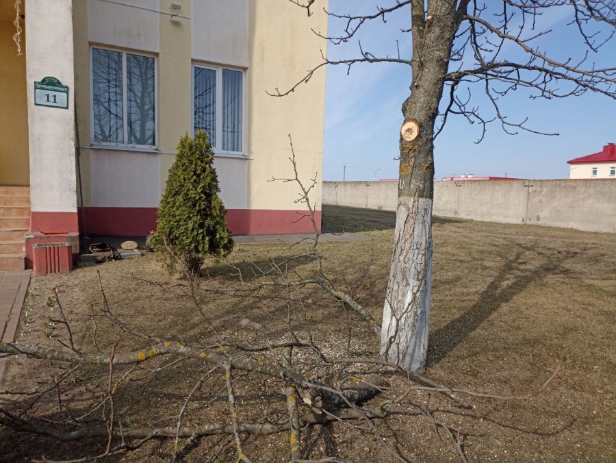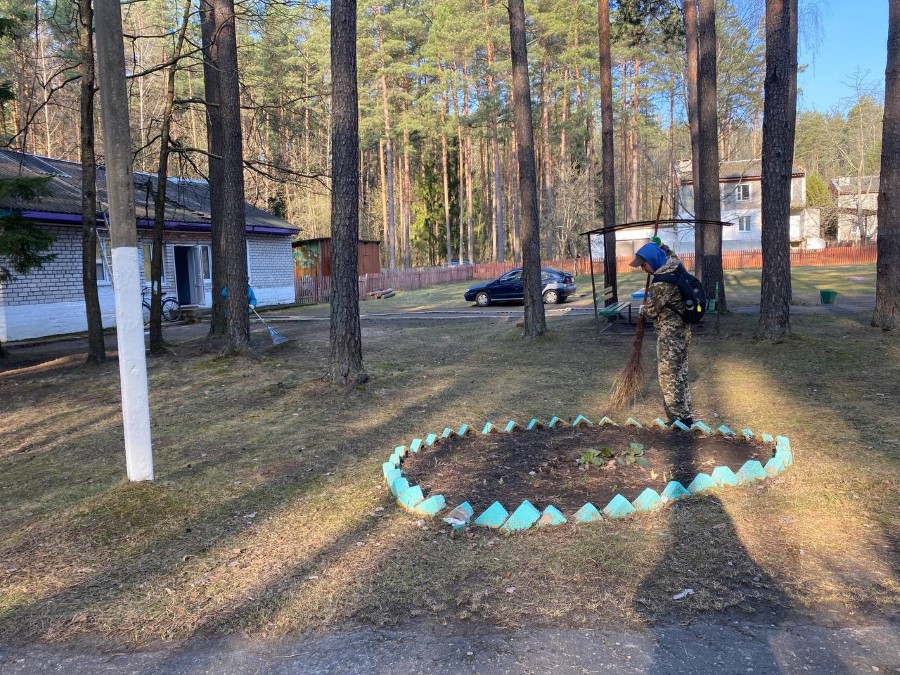Работники ГУО "Березинская детская школа искусств" наводят чистоту на своей и примыкающей к школе территории.