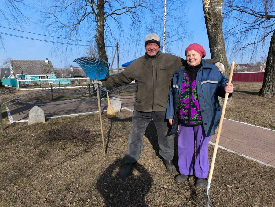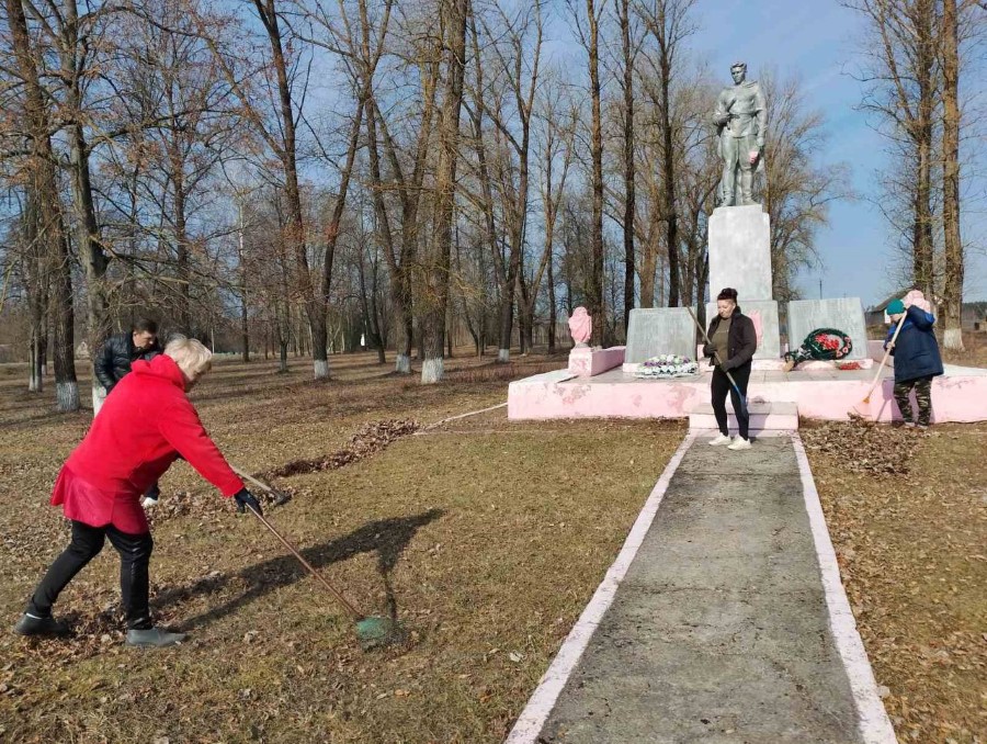 Работники Березинского филиала приняли участие в субботнике, убрали листву и мусор на воинских захоронениях в деревне Руденка, которые закреплены за филиалом.