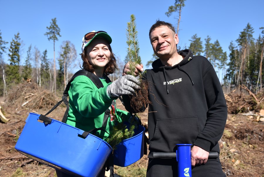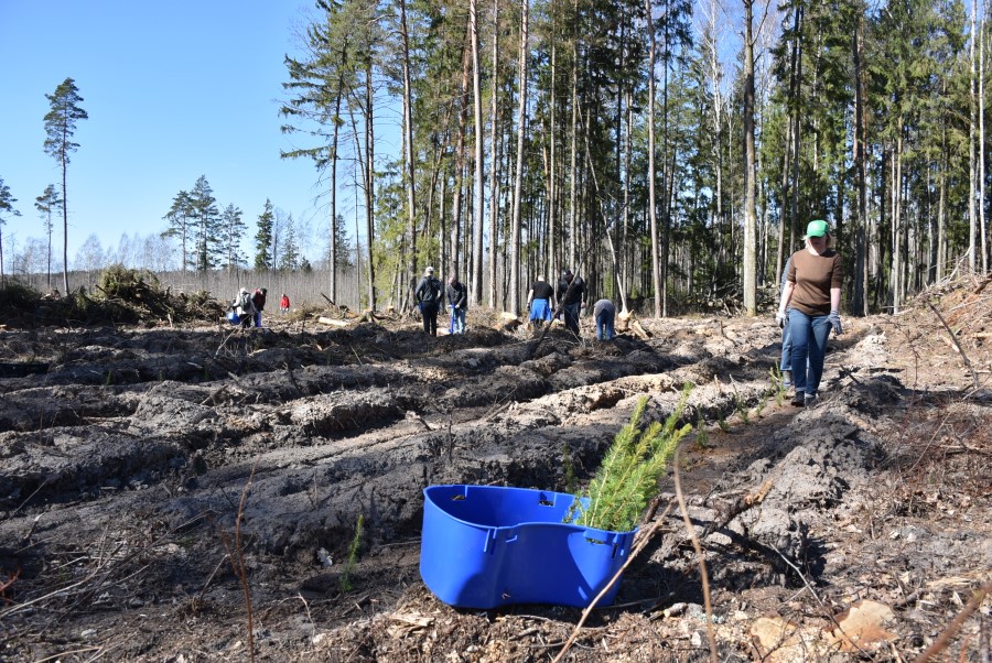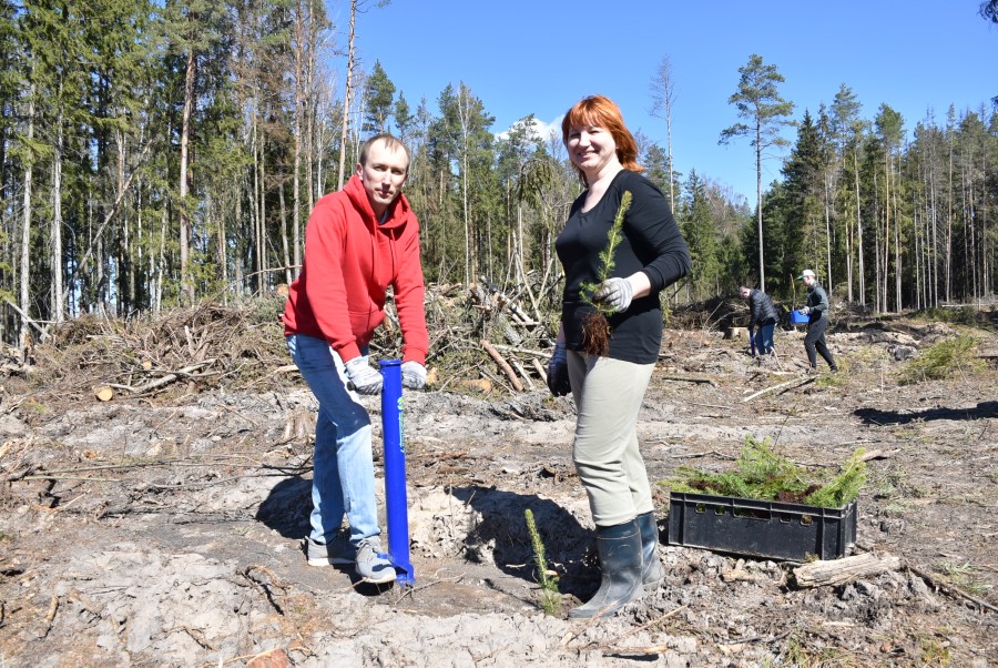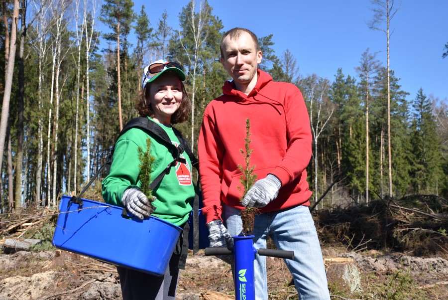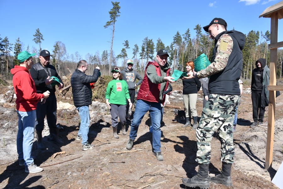 Получив саженцы, полагающиеся инструкции и специальные приспособления, участники акции засучили рукава и в течение нескольких часов трудились на лесных участках.