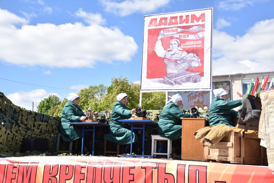 Помним мы и о том, что линия фронта проходила в годы войны не только там, где рвались снаряды и погибали солдаты. Фронт был везде, по всей стране. Если бы не работал тыл, солдатам не было бы во что одеваться, нечем стрелять, не на чем летать. И когда мужчины ушли на войну, к станкам стали женщины и дети. Фабрики и заводы круглосуточно выпускали оборонную продукцию – выпущенную женскими и детскими руками. По железным артериям постоянно двигались поезда, где у паровозных топок зачастую стояли женщины. Женщины собирали автоматы, миллионы патронов и миллионы тонн взрывчатки, они собирали самолеты и танки, шили обмундирование и возделывали поля. Все для фронта, все для победы! И они упорно стояли у станков, валились от усталости у штурвалов паровозов, засыпали в сборочных цехах. НО вставали и сжав зубы снова ковали победу. А потом они шли домой и вязали теплые носки и кисеты, писали письма любому солдату, потому что каждый из них был свой, наш. Они собирали подарочные посылки, в которых было все необходимое – только для них: наши мальчики, наши мужчины, наши сыновья, мужья, отцы и даже деды. И они били врага везде, где бы он не был. Это они, женщины, своими нежными руками – руками, привыкшими к труду – вынесли на своих плечах тяжесть молота победы. А ведь при этом они еще воспитывали детей – и своих, и тех, кто потерял своих родителей от бомбежек и в эвакуации.