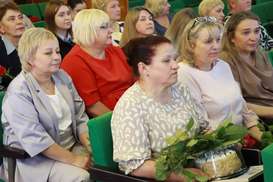 Для вручения благодарностей на сцену актового зала был приглашен глава района.