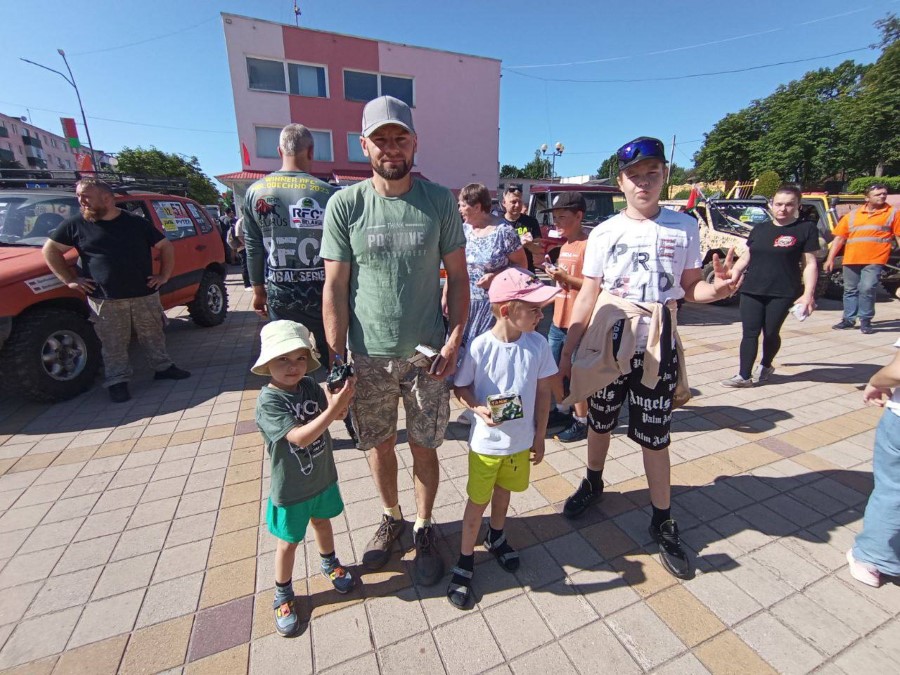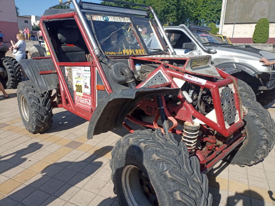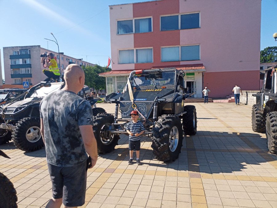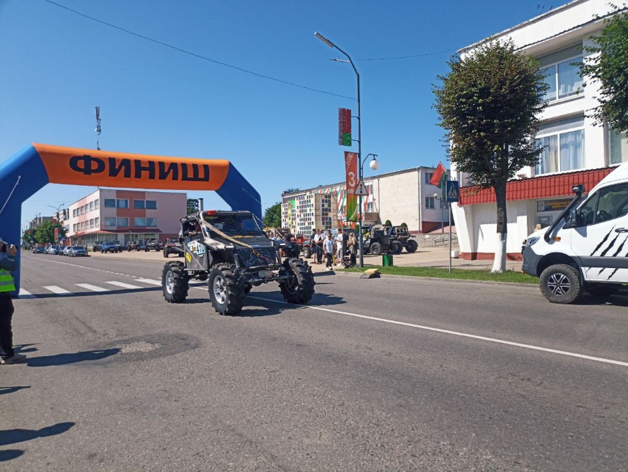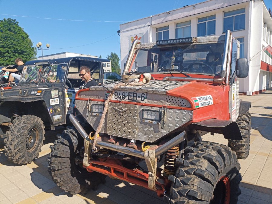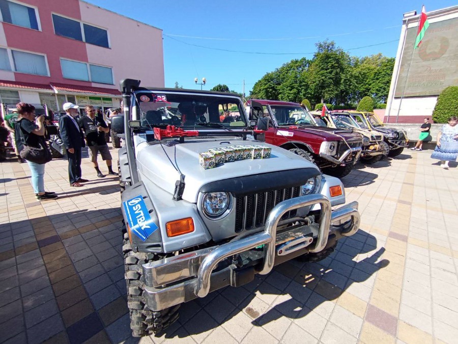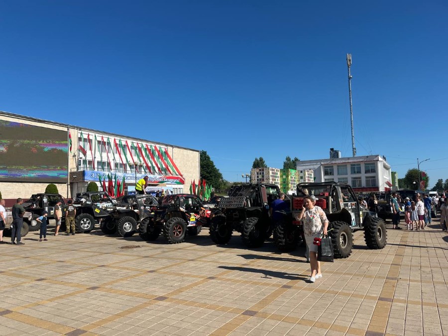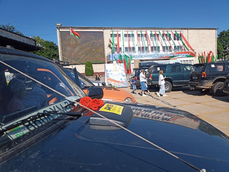 На праздновании Дня Независимости присутствуют участники трофи-рейда, собравшиеся у нас не только из различных городов Беларуси, но и стран ближнего зарубежья. Гости прибывают на городскую площадь. Любителям внедорожников сегодня есть на что посмотреть.