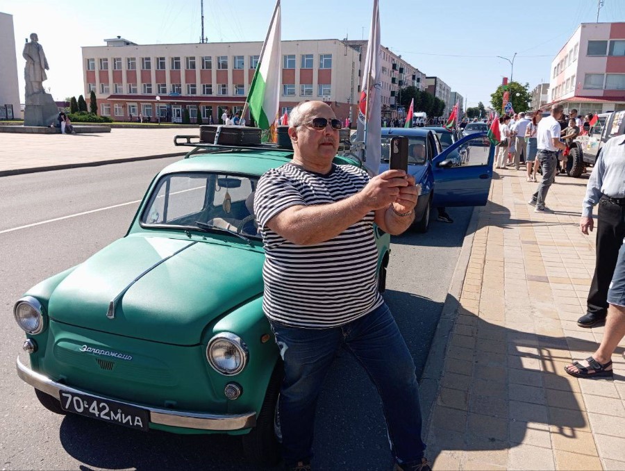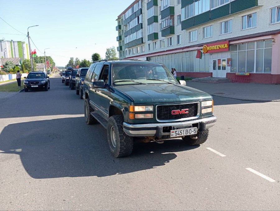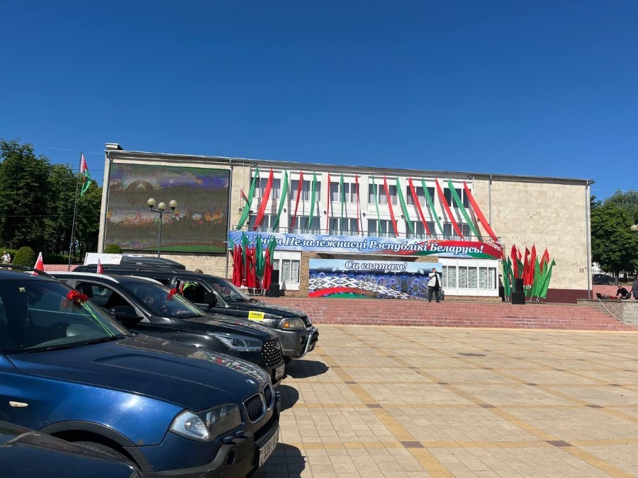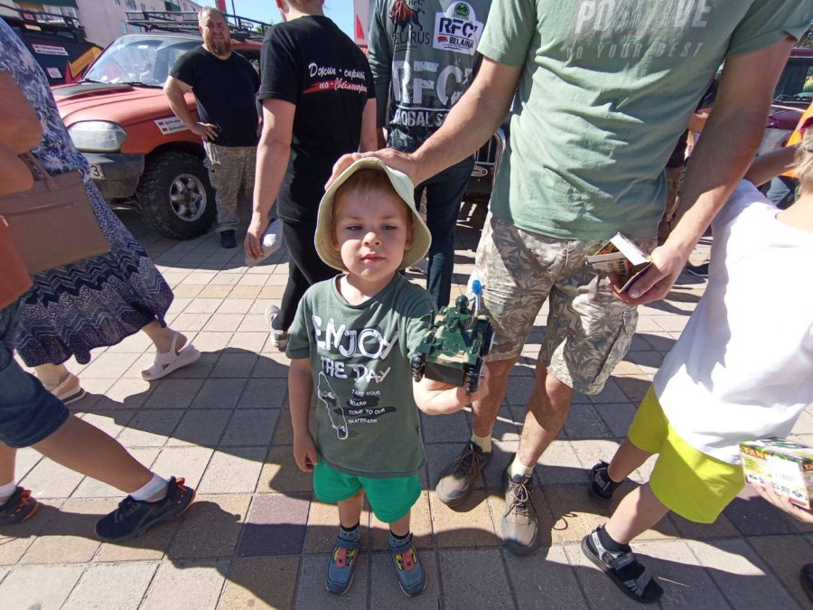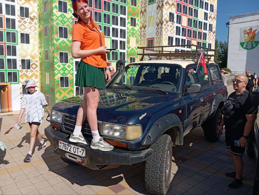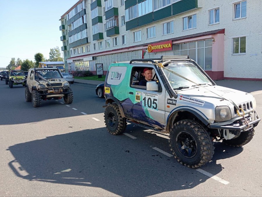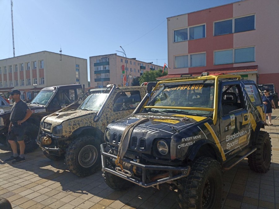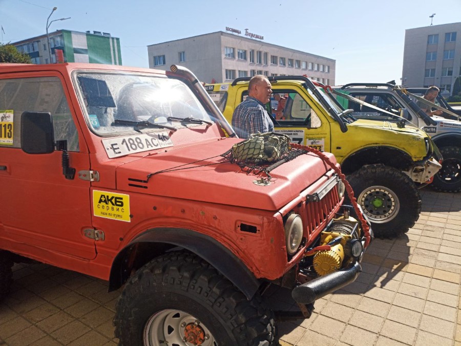 На праздновании Дня Независимости присутствуют участники трофи-рейда, собравшиеся у нас не только из различных городов Беларуси, но и стран ближнего зарубежья. Гости прибывают на городскую площадь. Любителям внедорожников сегодня есть на что посмотреть.