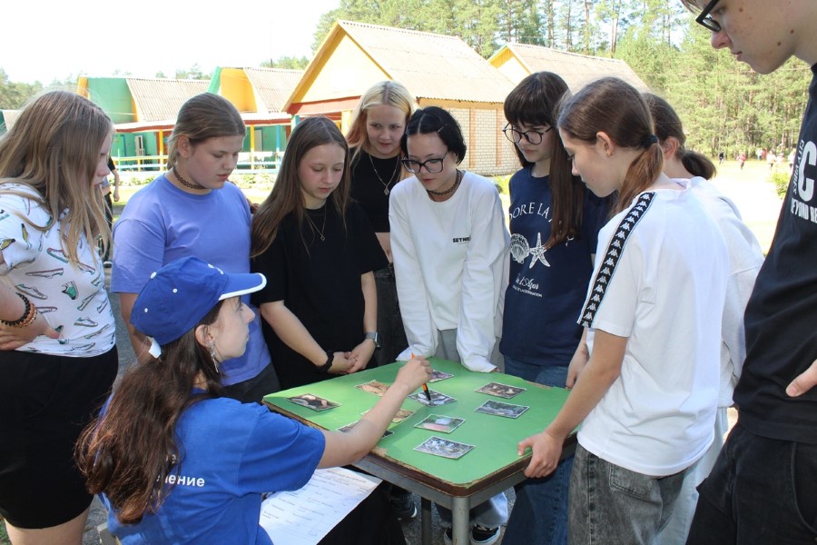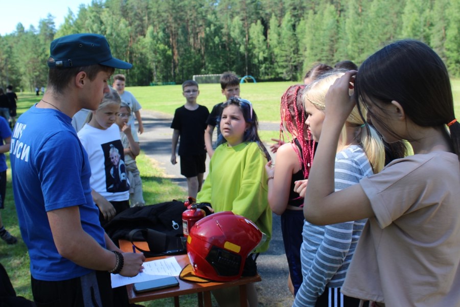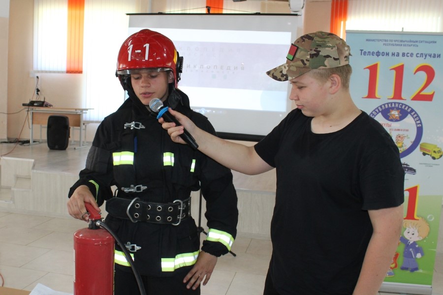 Атрадам прапанавалі прайсці іспыты на сямі лакацыях: дзеці тушылі ўмоўнае ўзгаранне, разгадвалі красворд бяспекі, называлі знакі эвакуацыі і вызначалі прыгоднасць для ежы розных грыбоў, перабіраліся праз «балота»  па купінах, складвалі гістарычны пазл. У актавай зале мы пагаварылі пра тыя сітуацыі, якіх неабходна пазбягаць падчас летняга адпачынку, паглядзелі два фільмы. А юны ратавальнік Васіль Калянковіч нагадаў дзецям, як трэба правільна карыстацца вогнетушыцелем.