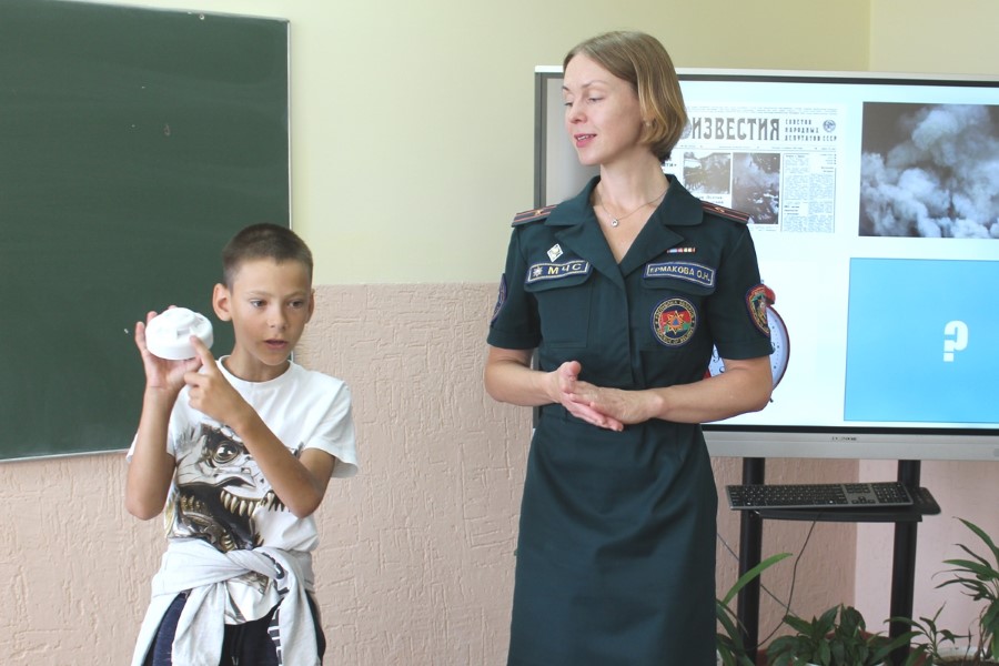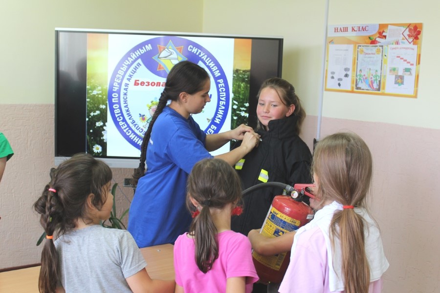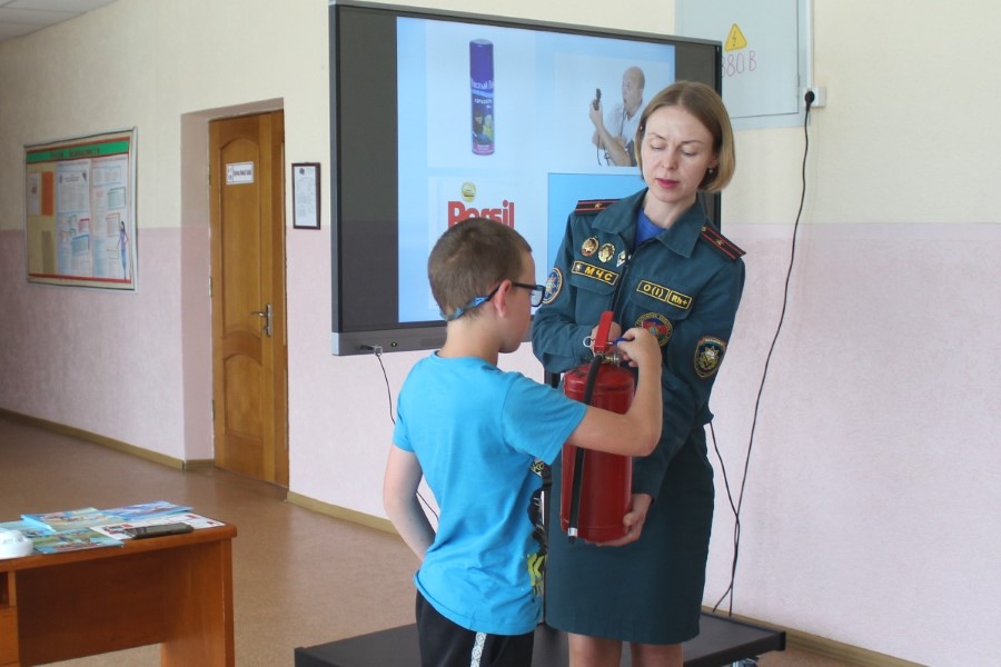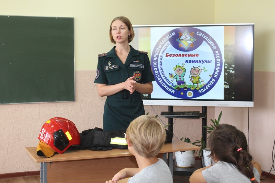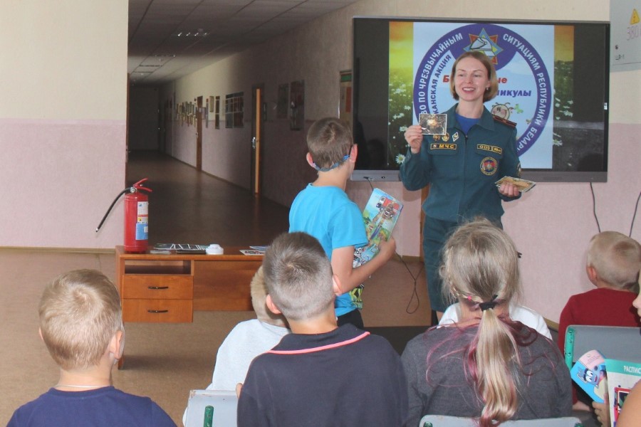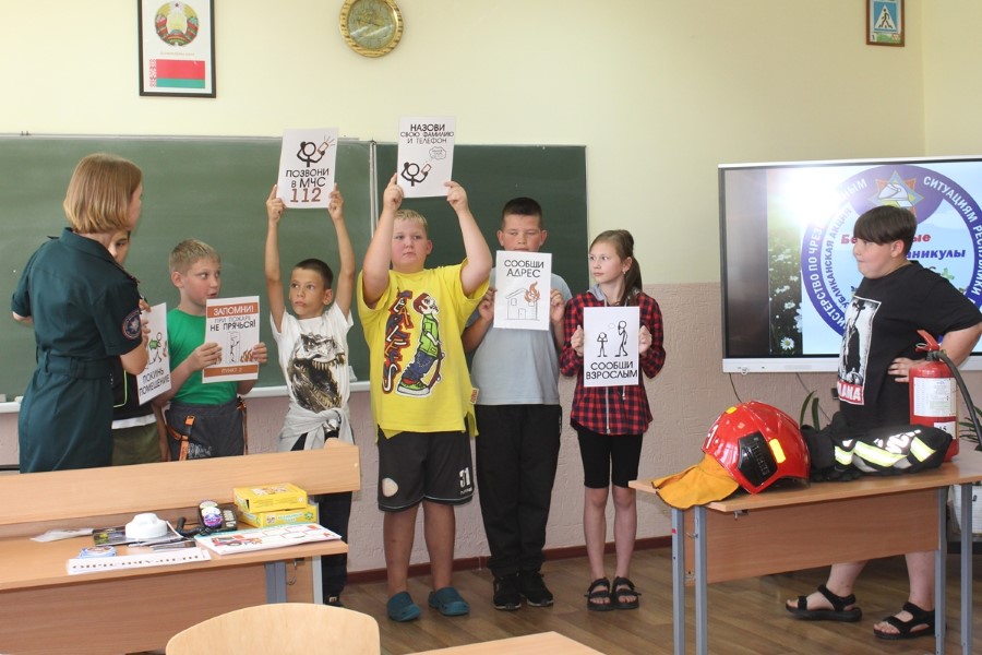 Дети хорошо знакомы с инспектором пропаганды райотдела по чрезвычайным ситуациям Ольгой Ермаковой, ведь встречи с ней проходят часто. Так, недавно ребята приезжали на экскурсию  в пожарную часть Березино: они познакомились с условиями быта и службы спасателей, примерили боевую одежду, посидели в кабине автоцистерны. Очередное мероприятие прошло для них в стенах родной школы: с детьми провели игры и конкурсы, показали мультфильм «Спецотряд 112», рассказали о несчастных случаях с участием несовершеннолених. Приятно, что всегда «на подхвате» активисты Березинского районного отделения Белорусской молодежной организации спасателей-пожарных: так, активистка БМООСП Валерия Шмарловская рассказала ребятам о назначении боевой одежды спасателей, провела викторину.