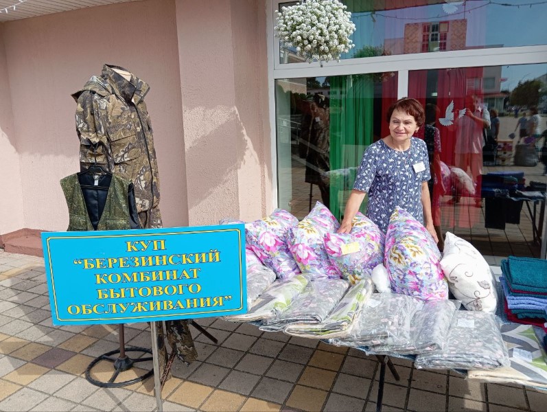 Если вы учитель труда и тоже готовитесь к учебному году, на локации Березинского РКБО можно приобрести отличные камуфляжные жилетки с множеством карманов и застёжек, куда поместиться всё: от мобильного телефона до пассатиж и молотка – удовольствие обойдётся всего за 44 рубля. К слову, на локации представлена продукция для всей семьи. Есть здесь комплекты постельного белья, подушки, полотенца. А для школьников – джемпера для мальчиков по 20-22 руб.