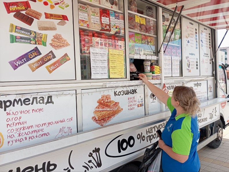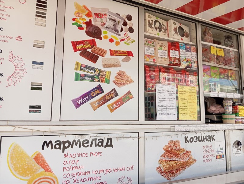 На локации известного бобруйского производителя сладостей «Красный пищевик» у покупателей разбегались глаза от выбора различных видов зефиров. Он здесь был «Жевательный со вкусом мандарина», «Ванильный», «Лимонный с имбирем», «Ванильный в шоколаде», «Черничный», и с грейпфрутовой начинкой. Продавались драже «Морские камешки» и «Перепелиные яйца». Был представлен большой выбор конфет, пастилы, халвы, козинак и мармелада. Традиционно в этом месте в очередь выстраивались женщины.