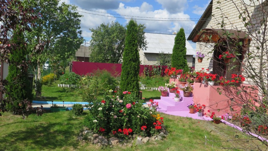 – Пладовыя дрэвы мы падразаем, белім, – дадае гаспадыня. – Ёсць у нас і агарод. Тут усяго патрошку: кабачкі, бульба, цыбуля, агуркі, перцы. Мы з мужам не лянуемся працаваць на ўчастку, бо знаходзімся цяпер на заслужаным адпачынку. У дызайнерскім пытанні шмат чаго падказвае інтэрнэт. Хаця яшчэ з дзяцінства я добра малявала. Гэта дапамагае ствараць утульнасць на нашым участку.