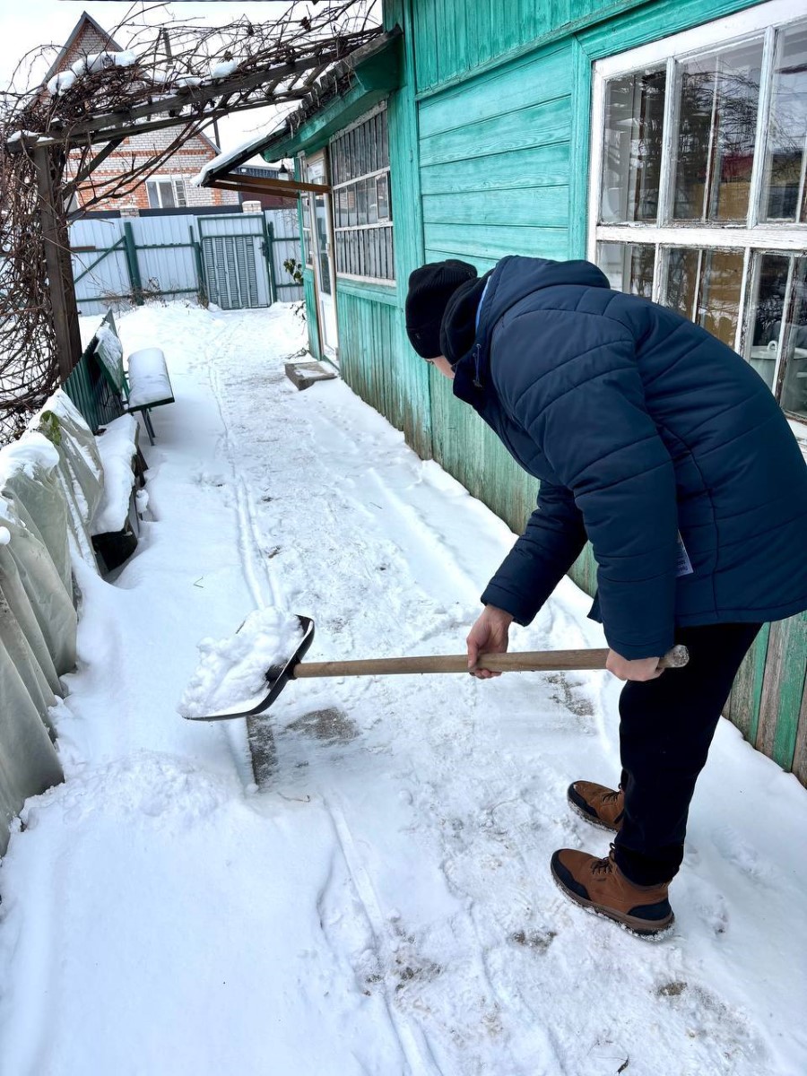 Поздравления - это важно, но реальная помощь - ещё важнее. Поэтому в рамках визита мы не просто вручили новогодние пожелания, но и помогли убрать снег с территории дома, чтобы Галине Викентьевне было удобнее и безопаснее.