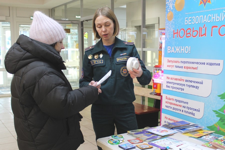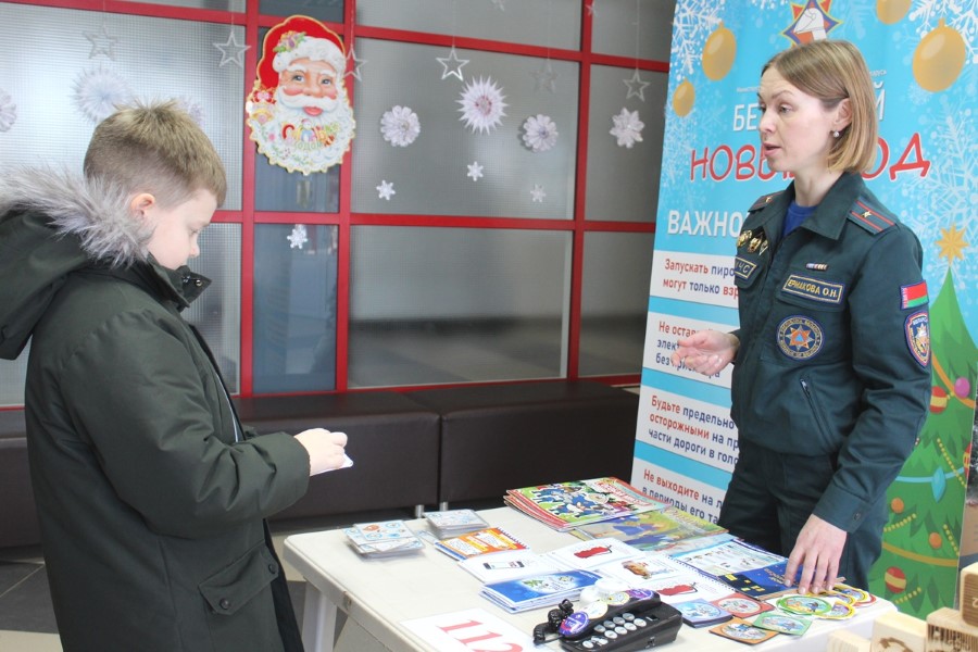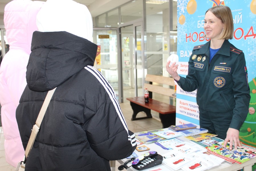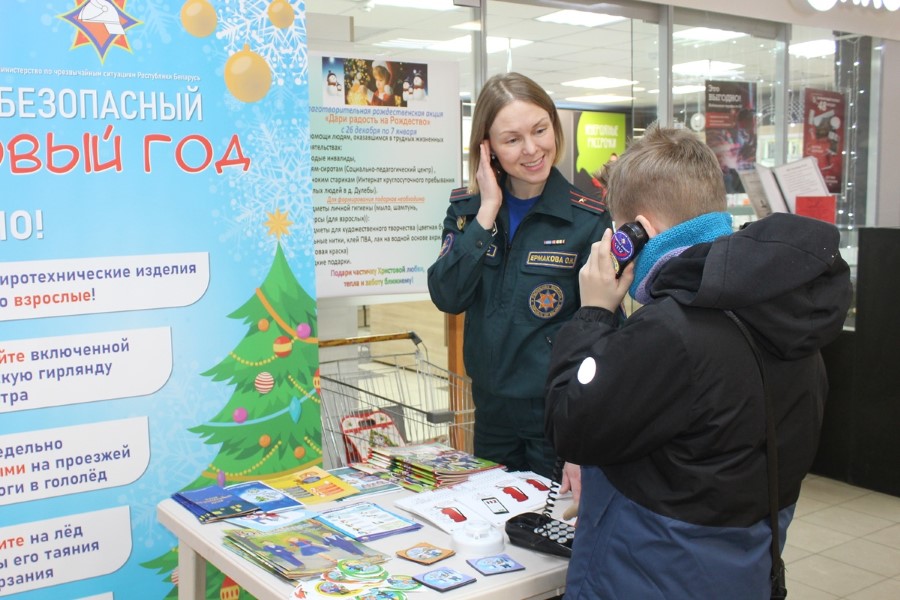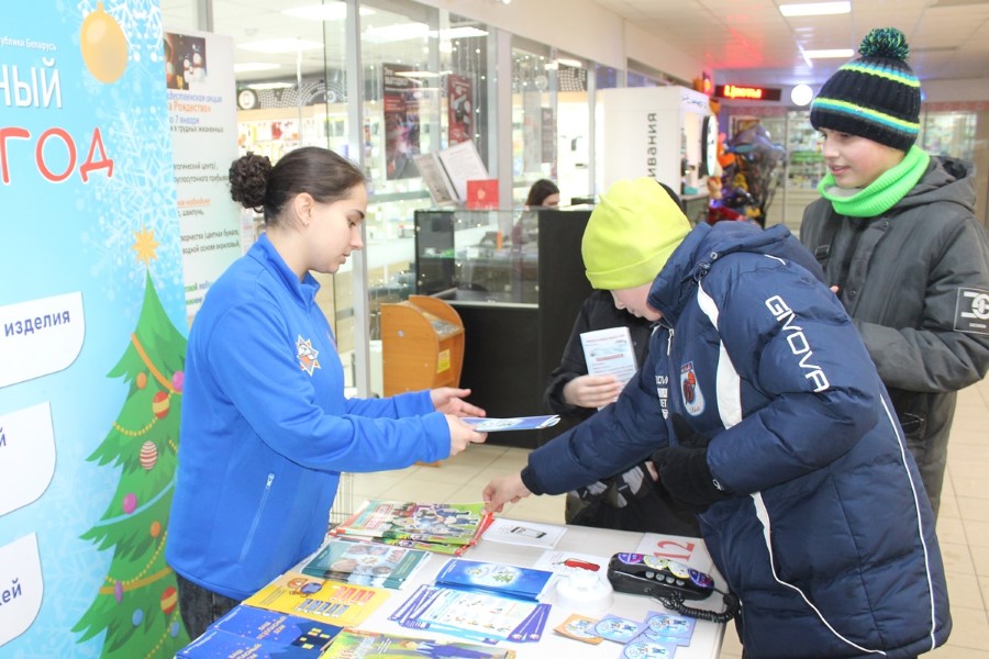Інспектар прапаганды райаддзела па надзвычайных сітуацыях Вольга Ермакова разам з памочніцай з ліку актывістаў Беларускай маладзёжнай арганізацыі ратавальнікаў-пажарных Валерыяй Шмарлоўскай нагадалі дзецям і дарослым простыя і вядомыя ўсім правілы: не выкарыстоўвай піратэхніку, не ступай на тонкі лёд вадаёма, пры катанні з горкі будзь асцярожны, не дапускай пераахалоджвання, сачы за дзецьмі. На жаль, ужо ў першыя дні нашага года ў краіне зафіксаваныя і выпадкі траўміравання людзей піратэхнікай, і сітуацыі гібелі на вадаёме. Усе ўдзельнікі акцыі атрымлівалі падарункі – буклеты, магніты, карысныя брашуры.