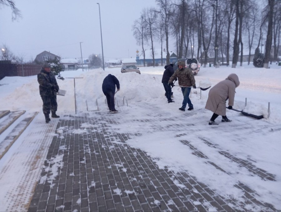 В том числе работники Березинкого районного центра культуры и Березинской библиотеки участвуют в уборке снега.
